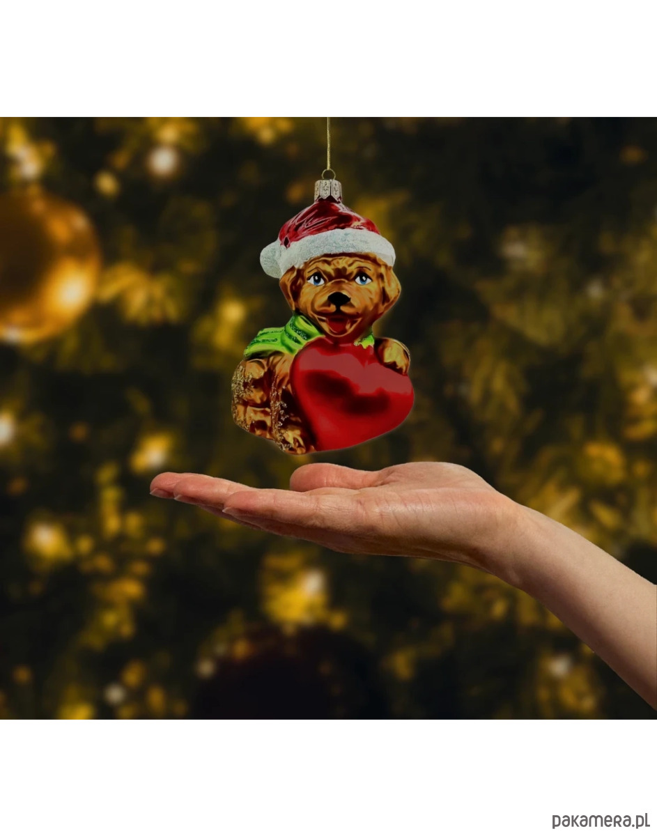 Bombka choinkowa: Świąteczny piesek z sercem