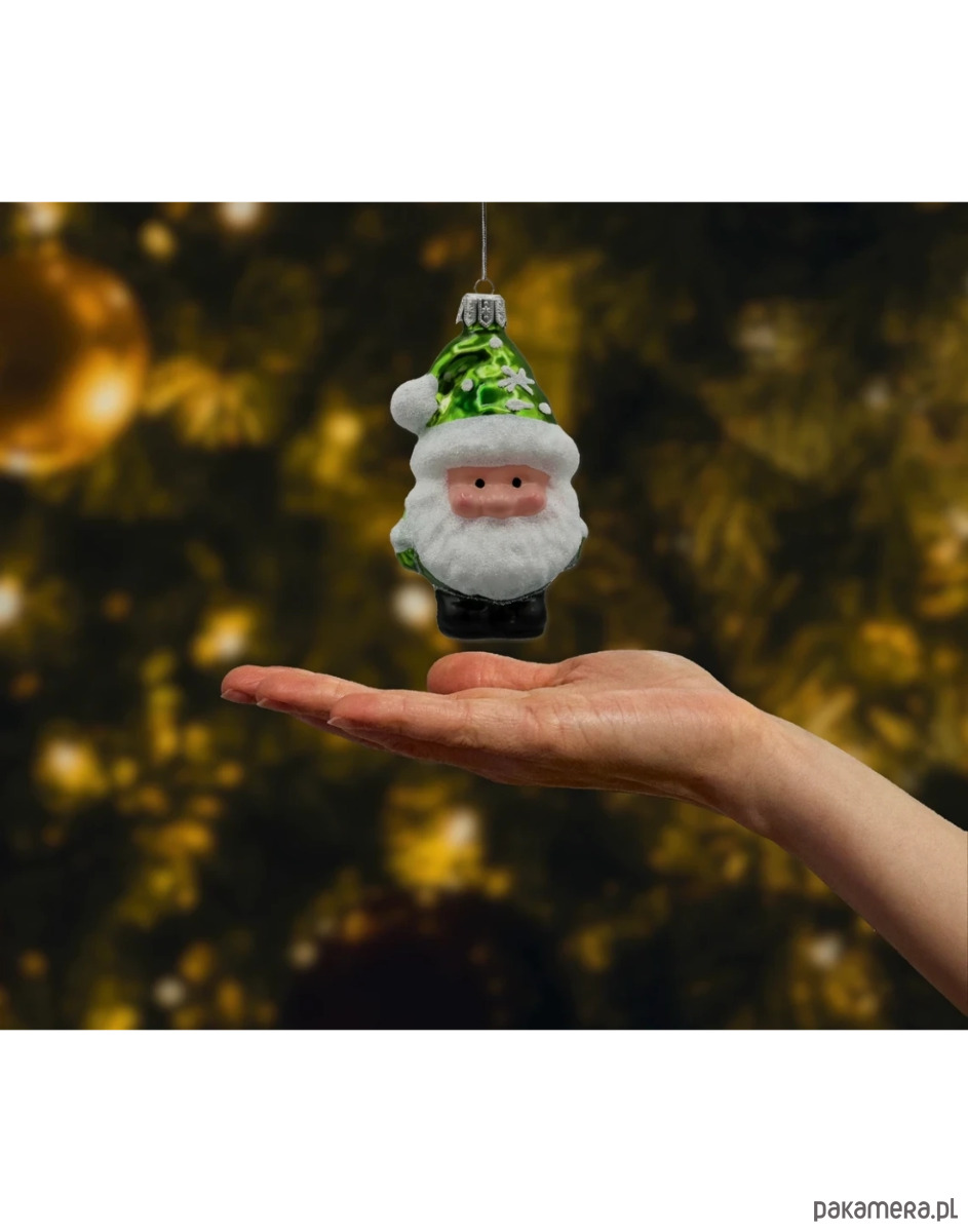 Wprowadź do swojej choinki odrobinę bajkowego uroku dzięki tej wyjątkowej szklanej bombce w kształcie uroczego Skrzata Mikołaja w nietypowym, zielonym stroju. Ręcznie malowana bombka przyciąga wzrok intensywnie połyskującym odcieniem szmaragdowej zieleni oraz mieniącym się brokatem, który pokrywa czapkę, brodę i rękawy Mikołaja. Delikatna twarz o rumianych policzkach i czarne, lśniące oczka nadają postaci ciepły, przyjazny charakter. To idealna ozdoba dla osób, które cenią oryginalne dekoracje świąteczne i chcą dodać swojej choince odrobiny nowoczesnej klasyki z nutą humoru.