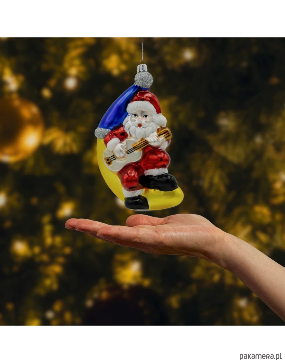 Bombka Święty Mikołaj na księżycu z gitarą to idealna ozdoba dla osób, które cenią świąteczne dekoracje z odrobiną humoru i fantazji. Jej wyraziste kolory, ręcznie wykonane detale oraz unikatowy design sprawiają, że wyróżnia się na choince, przyciągając uwagę i dodając wnętrzu radości. To doskonały pomysł na prezent lub oryginalna dekoracja, która wniesie do świątecznego wystroju nutę zabawy i świątecznej magii.