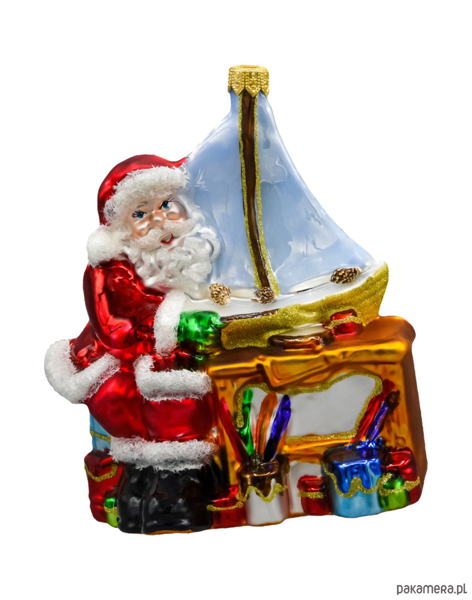 Bombka choinkowa: Święty Mikołaj przy stole z żaglówką