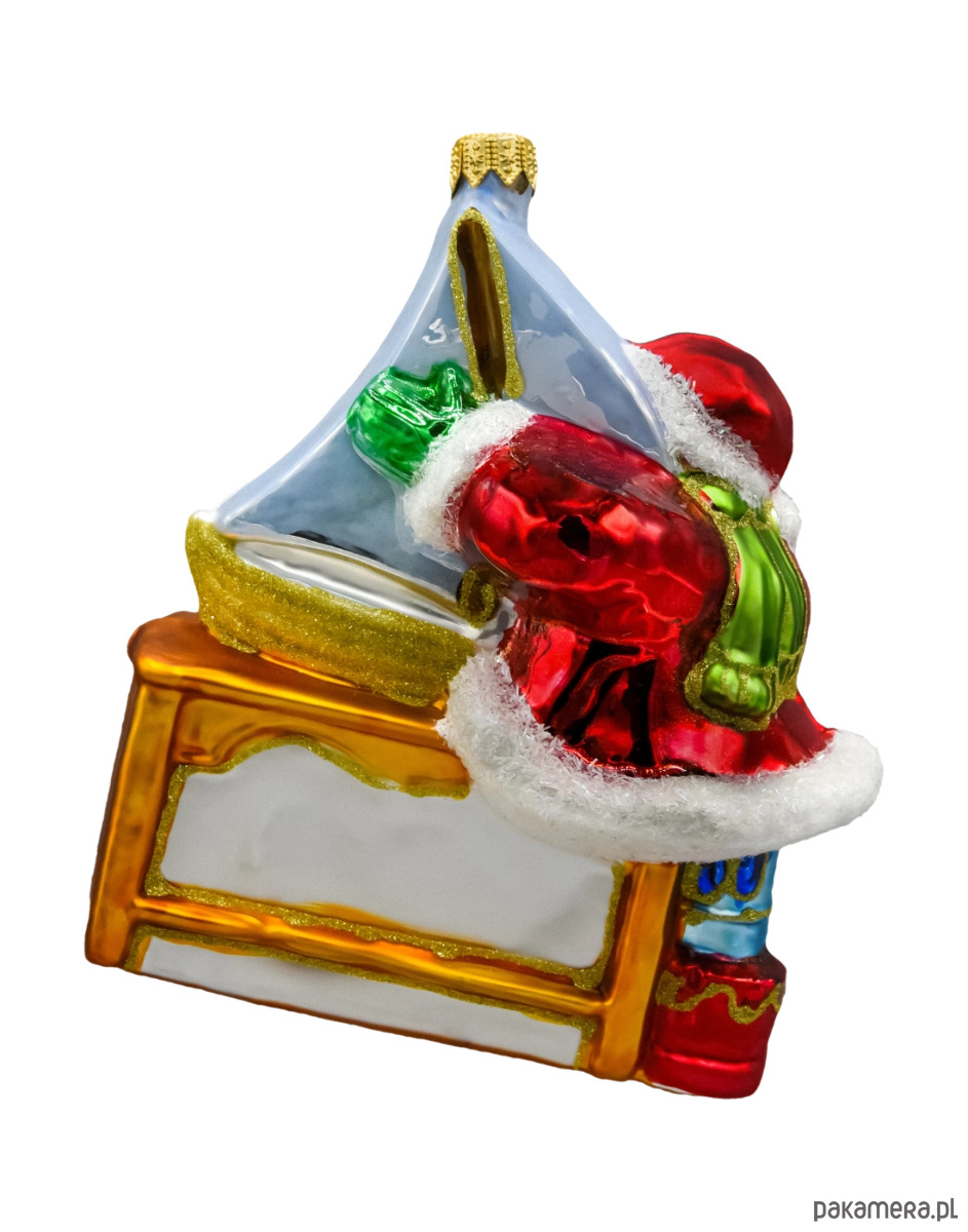 Ta bombka nie tylko zachwyca wyglądem – jest także trwała i lekka, dzięki czemu doskonale nadaje się do zawieszenia zarówno na większych, jak i średnich drzewkach świątecznych. Wyjątkowy motyw pracowni Świętego Mikołaja sprawia, że to doskonały wybór zarówno do tradycyjnych, jak i nowoczesnych dekoracji bożonarodzeniowych.