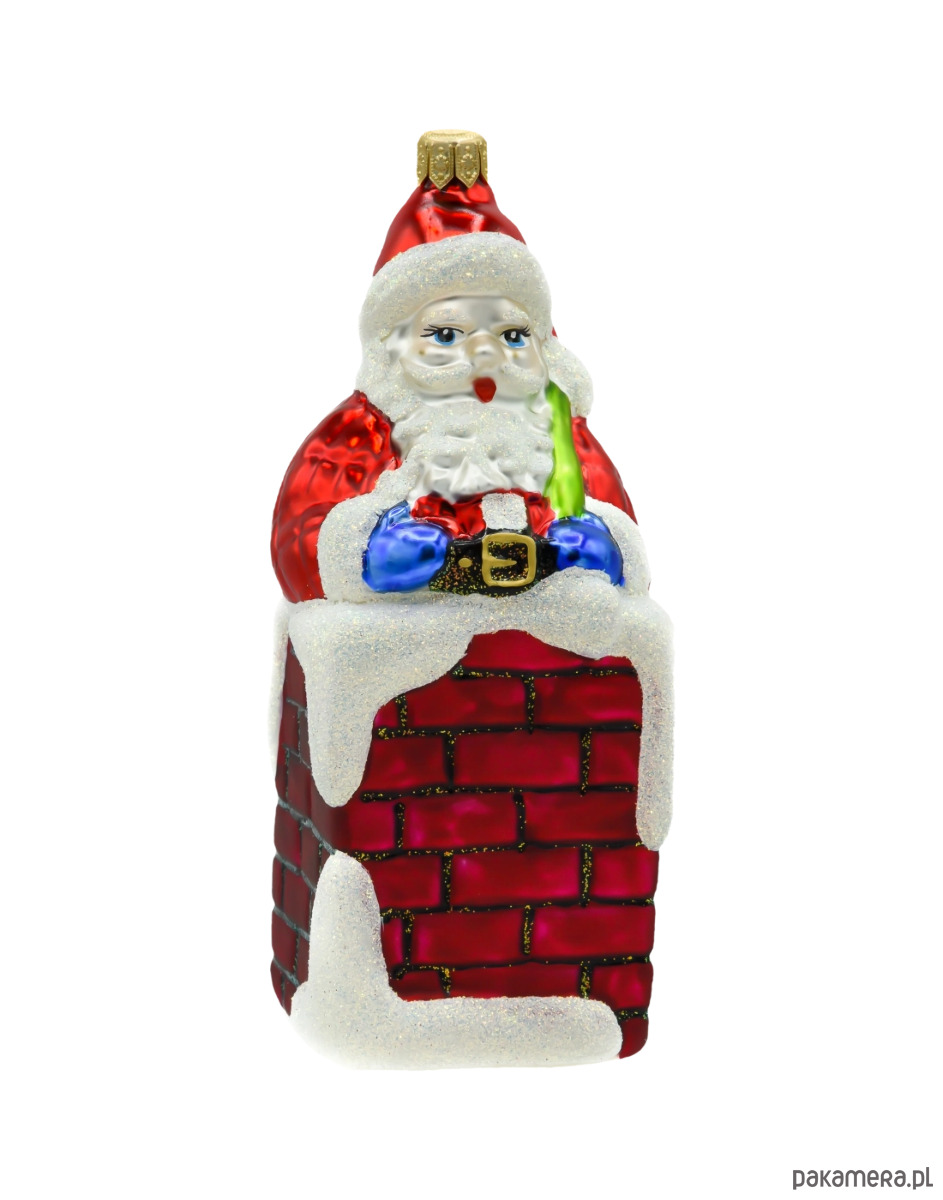 Bombka choinkowa: Święty Mikołaj w kominie: czerwony