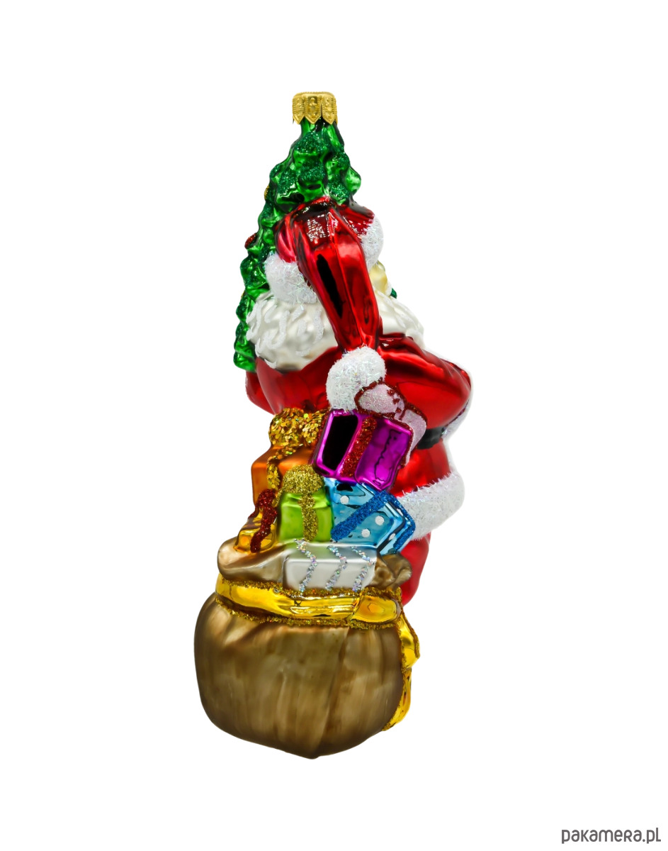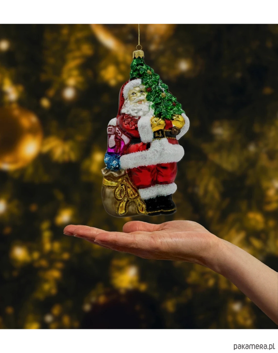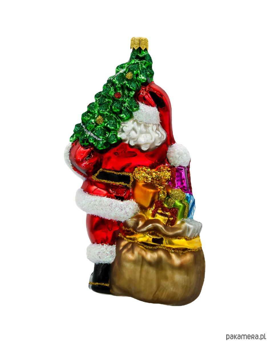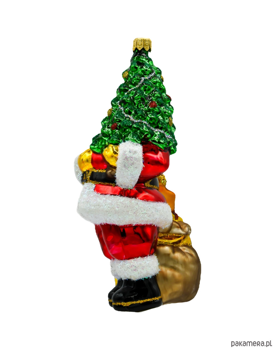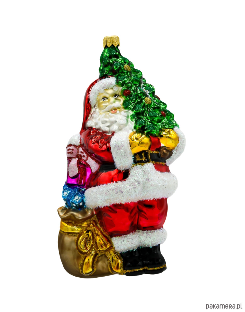 Bombka choinkowa: Święty Mikołaj z ciemnozieloną choinką