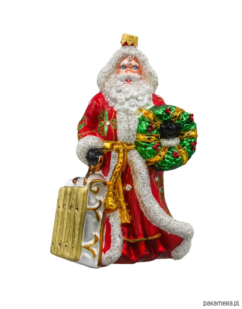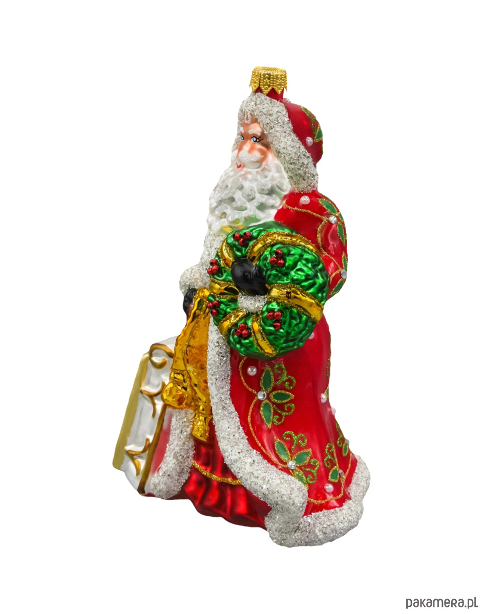 Bombka choinkowa: Święty Mikołaj z Wieńcem Bożonarodzeniowym