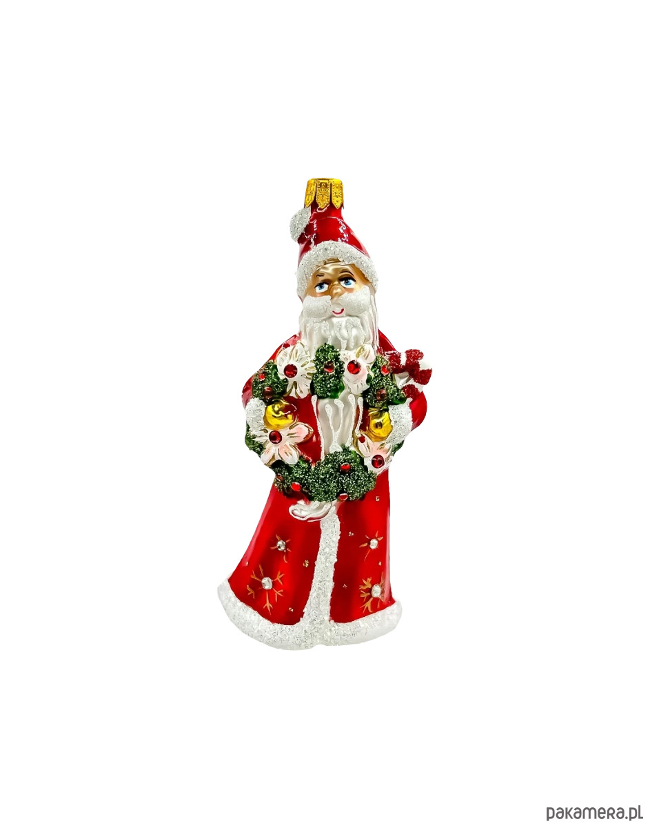 Bombka choinkowa: Święty Mikołaj z wieńcem świątecznym