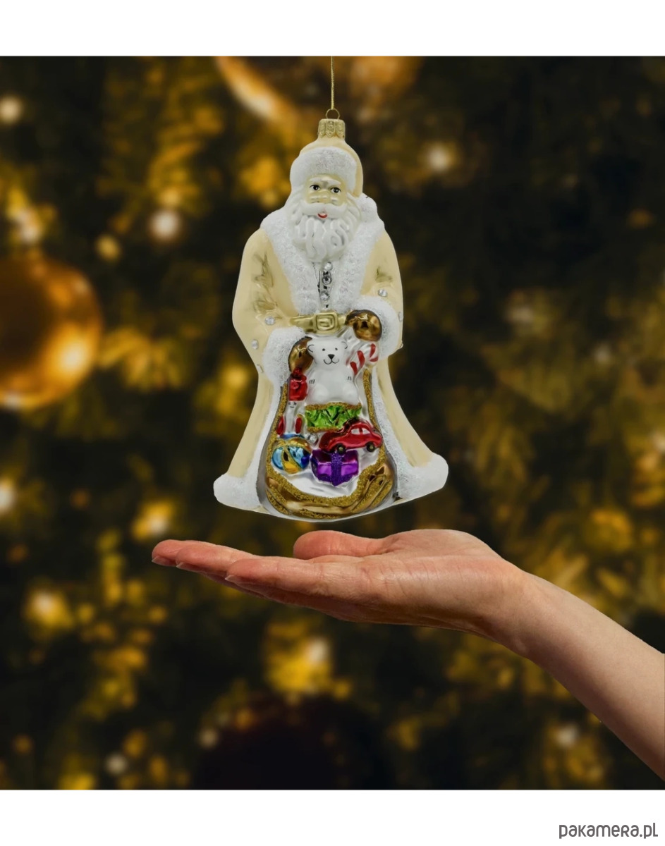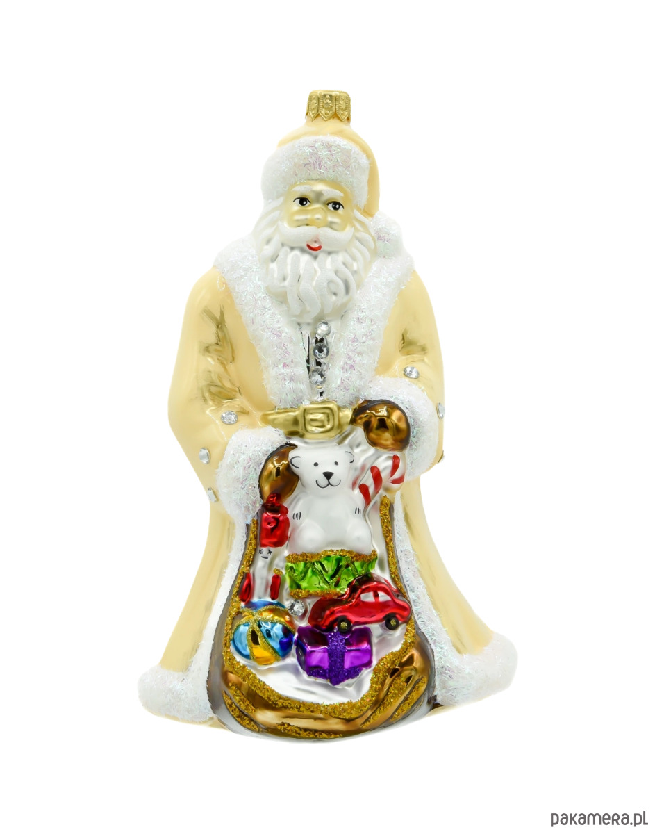 Bombka choinkowa: Święty Mikołaj z workiem prezentów: kremowy