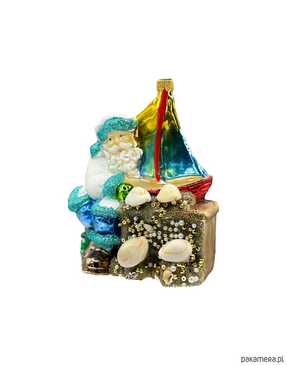 Bombka choinkowa: Święty Mikołaj z żaglówką