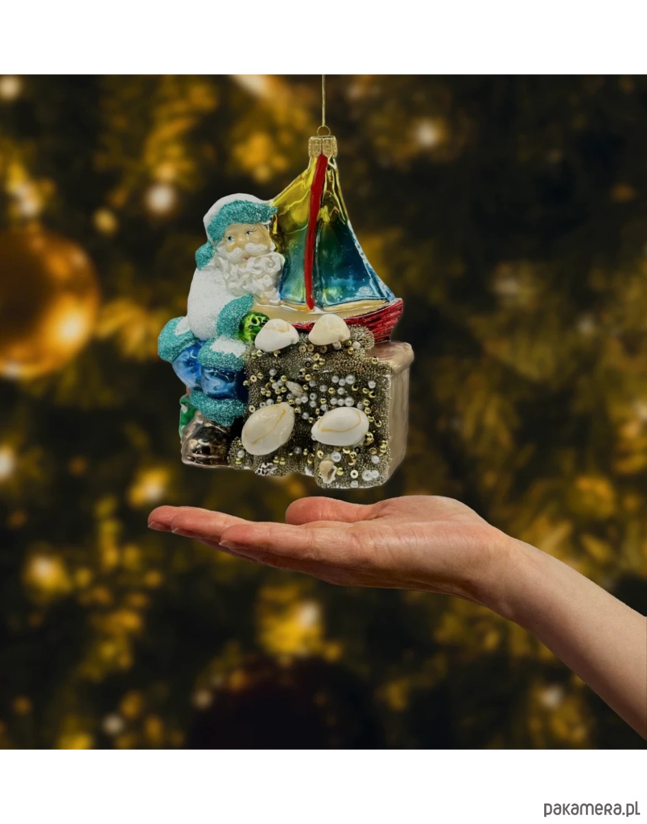 Unikalny design: Połączenie motywu morskiego z postacią Świętego Mikołaja tworzy oryginalną ozdobę, idealną na świąteczne drzewko, która wyróżnia się na tle tradycyjnych dekoracji.