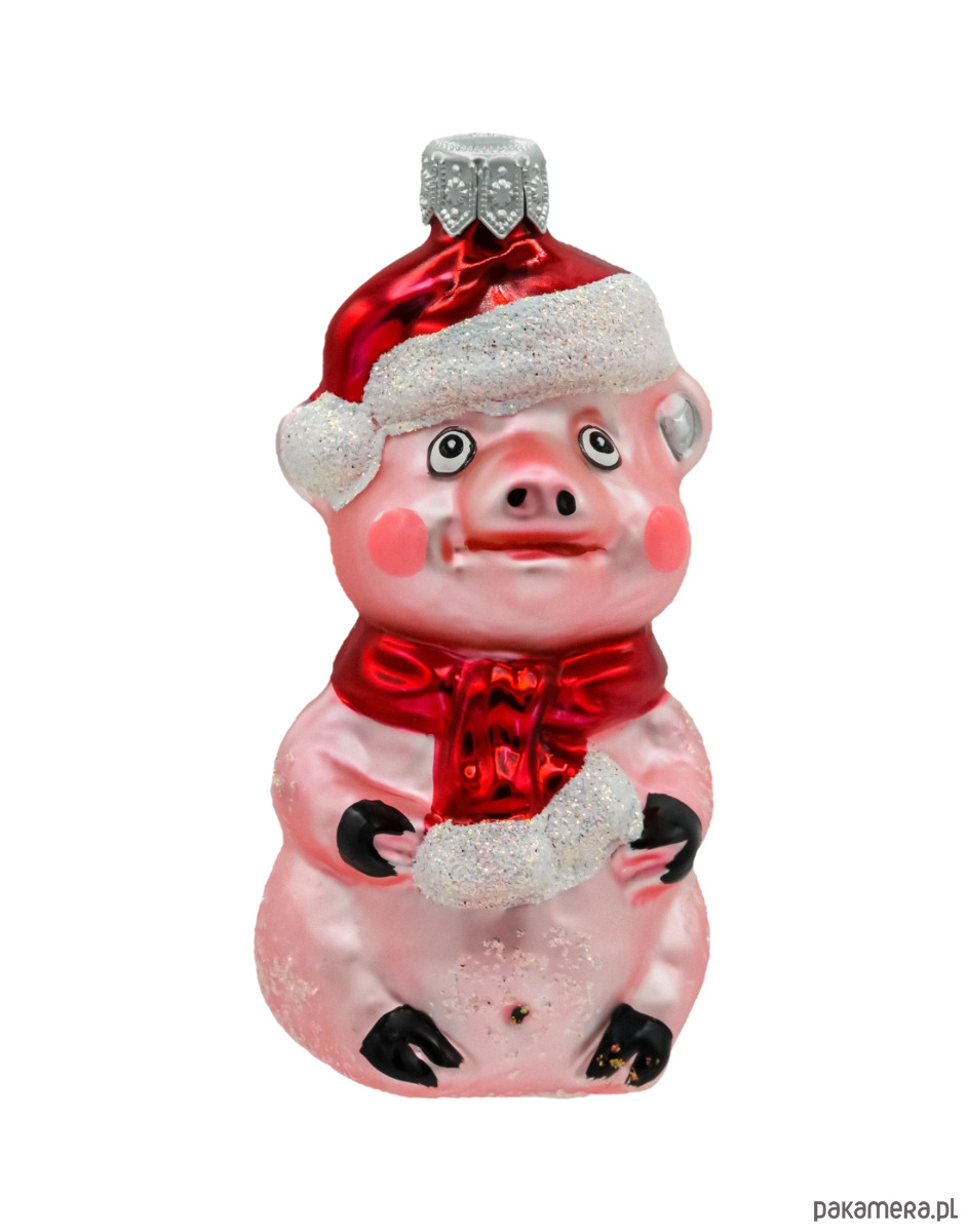 Bombka choinkowa: Świnka w czapce Mikołaja