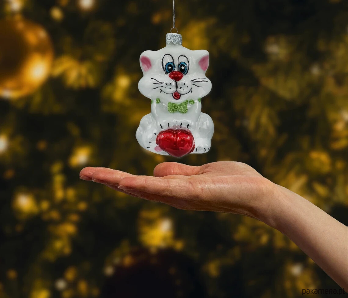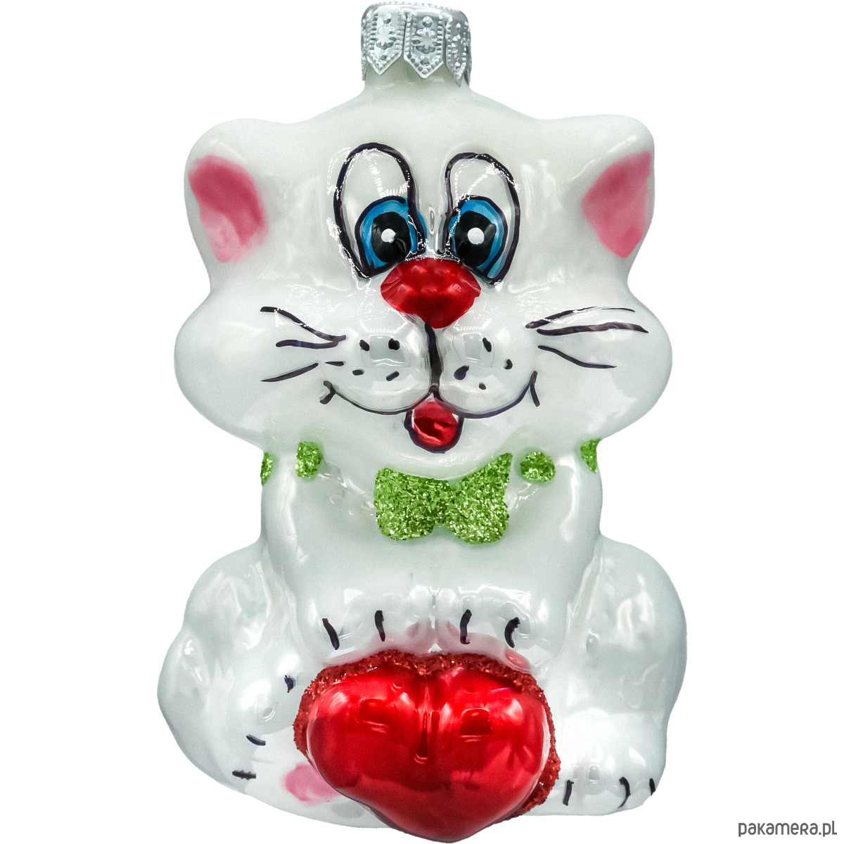 Bombka choinkowa szklana: Kotek z sercem w muszce