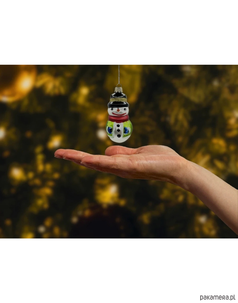 Motyw: bałwanek z kapeluszem i szalikiem. Ręczne malowanie z detalami i brokatowym wykończeniem