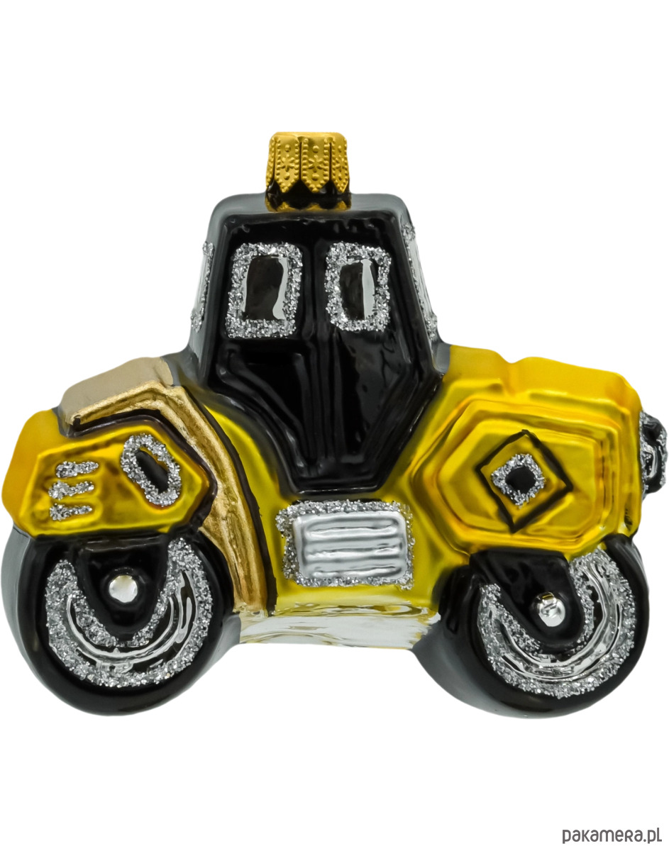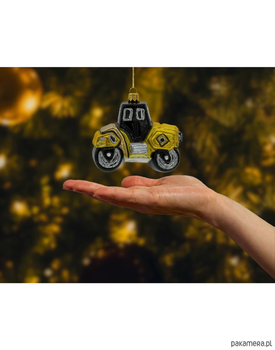 Bombka została wykonana z wysokiej jakości szkła dmuchanego, a jej forma i kolory przyciągają wzrok – intensywna żółto-czarna kolorystyka z metalicznymi akcentami i srebrzystymi brokatowymi detalami oddaje charakter prawdziwego walca. Dzięki precyzyjnemu malowaniu ręcznemu, każdy egzemplarz zyskuje unikalny charakter, a detale takie jak kabina operatora, rolki i reflektory są dopracowane z dbałością o realizm.