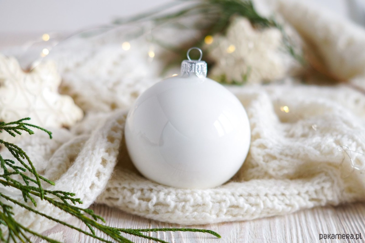 Bombka szklana, kolor biały.