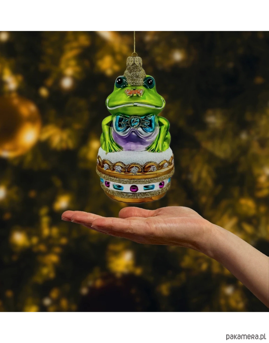 Nietypowy design – bombka w formie żabiego księcia to oryginalna ozdoba, idealna dla osób poszukujących nietypowych świątecznych dekoracji.