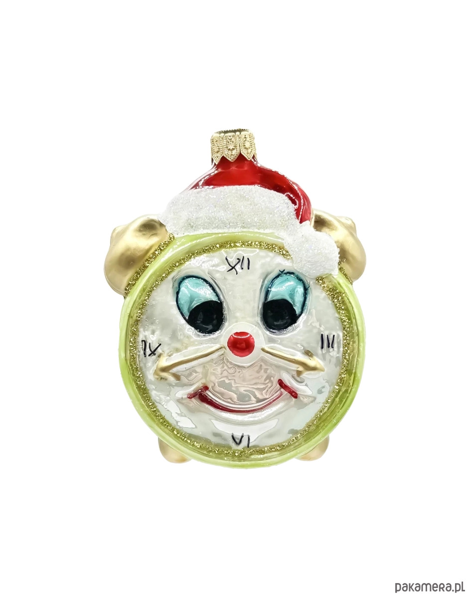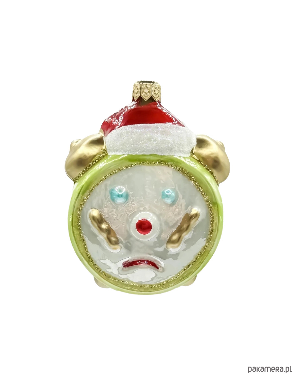 Bombka choinkowa: Zegar z czapką Mikołaja: jasnozielony