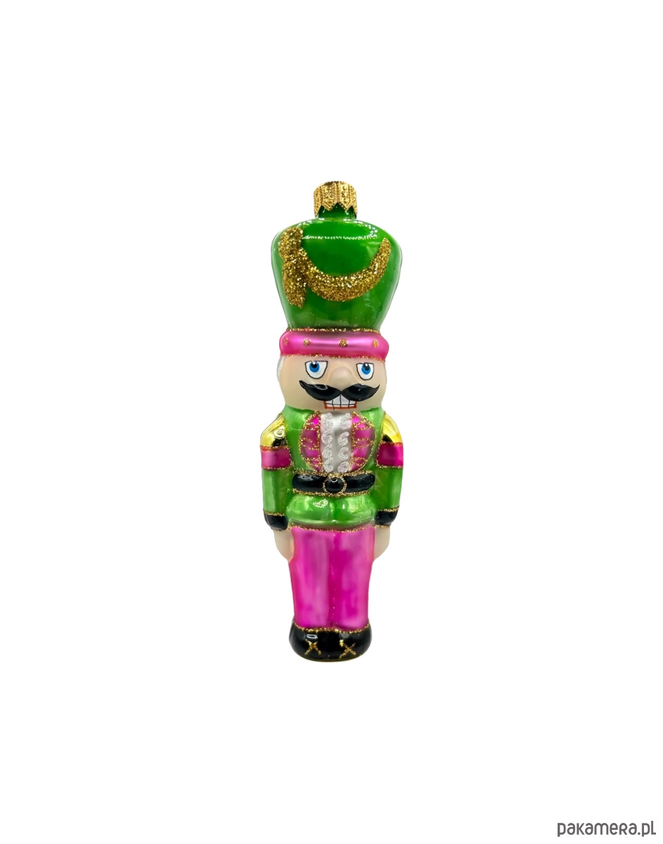 Bombka choinkowa: Żołnierz Dziadek do Orzechów: zielono-różowy