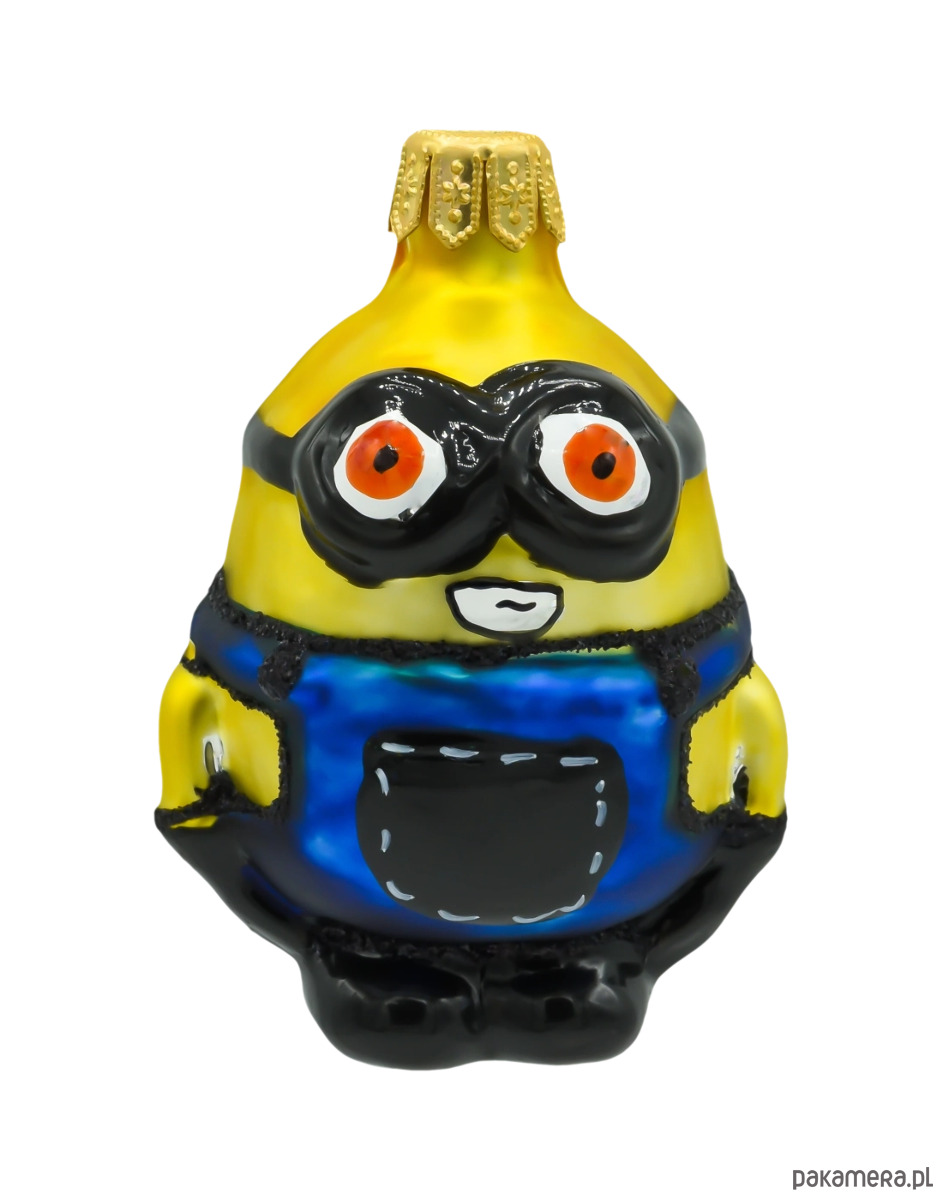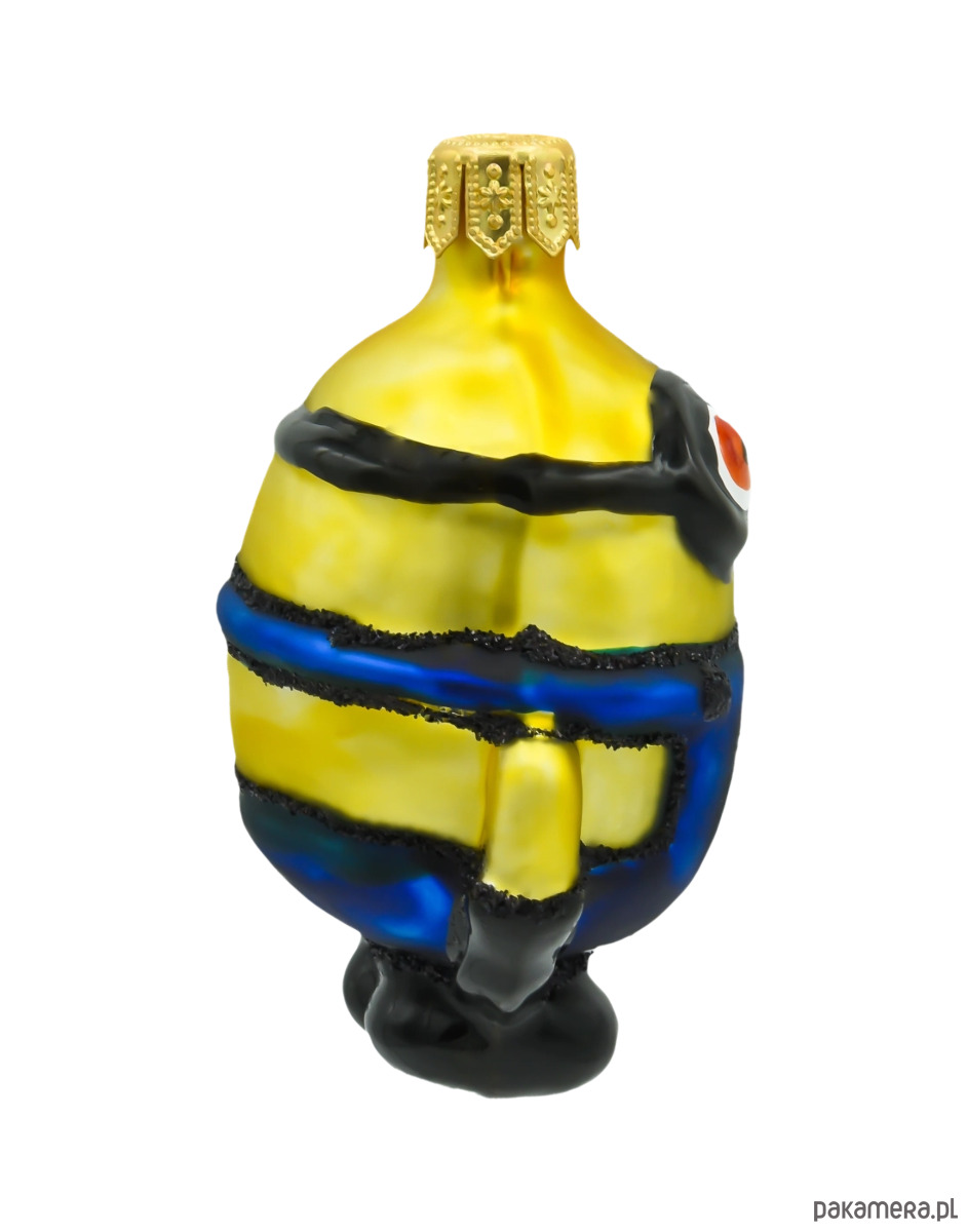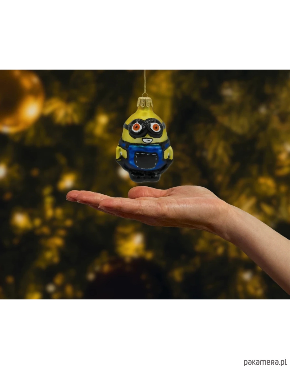 Zaskocz swoich gości nietuzinkową dekoracją świąteczną! Bombka choinkowa w kształcie zabawnego żółtego stworka z dużymi oczami i charakterystycznymi okularami to propozycja idealna dla miłośników animowanych bohaterów i humorystycznych akcentów. Ręcznie malowana figurka z uroczą miną i klasycznym niebieskim strojem wyróżnia się nie tylko kolorem, ale i humorem – wprowadza na choinkę nutę radości i luzu.