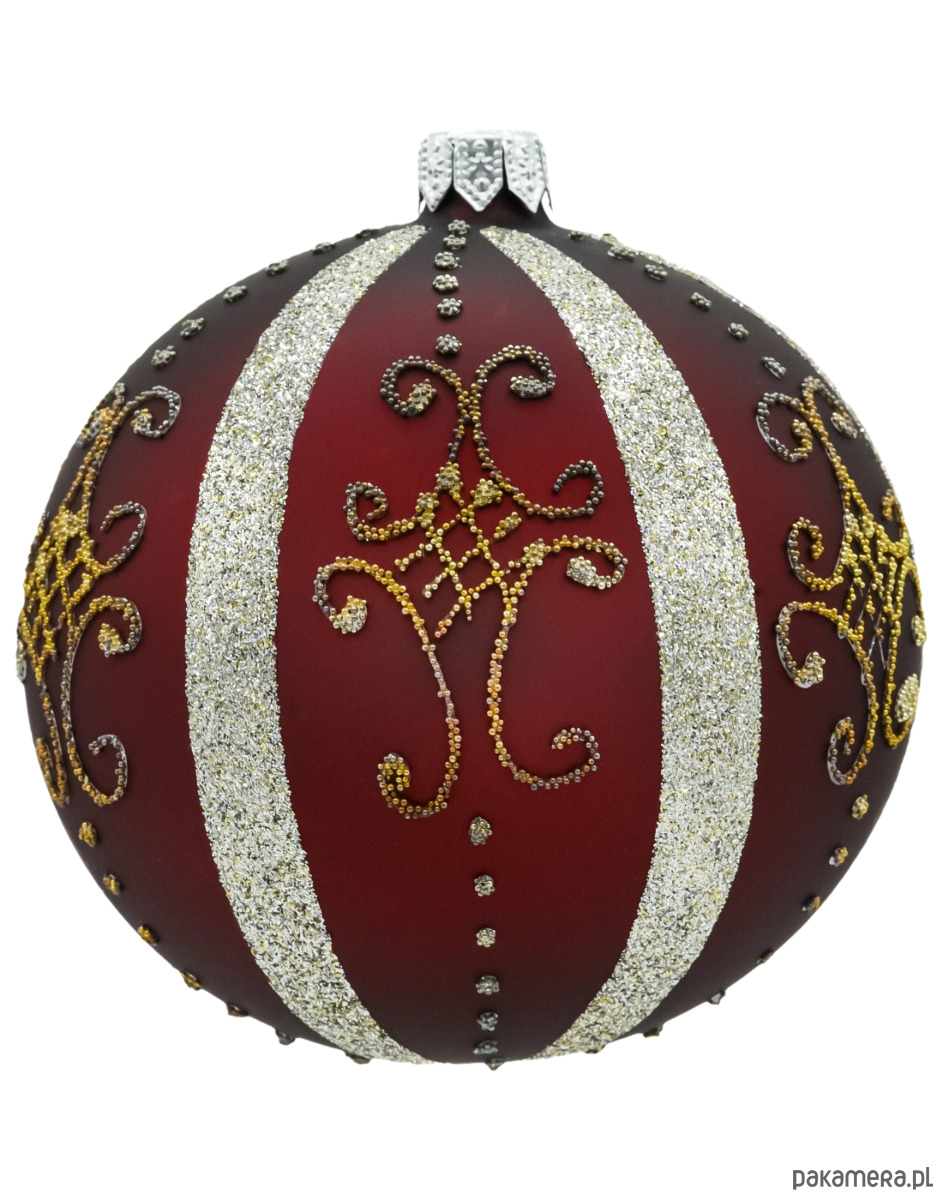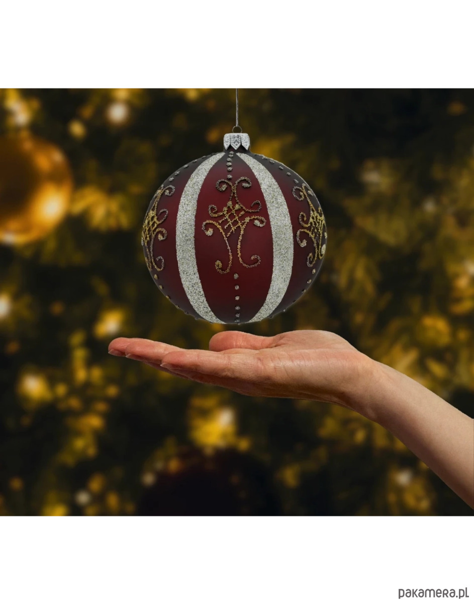 Bombka czerwona z eleganckimi srebrnymi zdobieniami