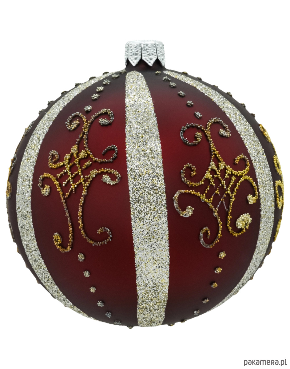 Motywy dekoracyjne: Symetryczne brokatowe wzory – dodają bombce wyrafinowanego stylu i podkreślają jej wyjątkowy wygląd.