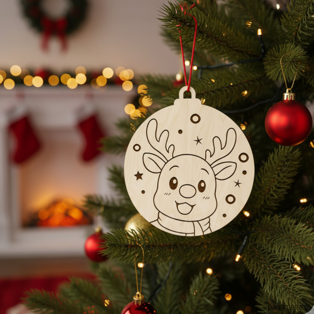 Ta okrągła bombka ze sklejki o średnicy 10 cm z precyzyjnym grawerem to elegancka i uniwersalna dekoracja świąteczna. Dzięki dziurce o średnicy 5 mm bombkę można łatwo zawiesić na choince, girlandzie czy w oknie.