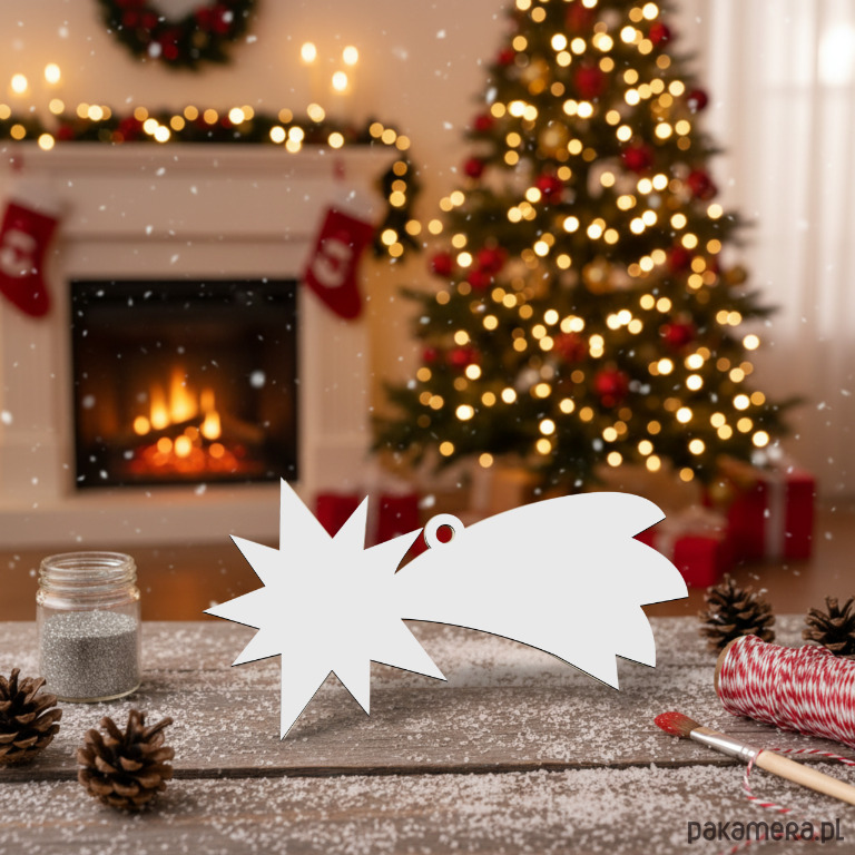 Wykonana z MDF jednostronnie laminowanego, o grubości 3 mm, jest lekka, trwała i gotowa do natychmiastowego zdobienia – malowania, dekorowania brokatem, decoupage czy innych technik DIY. Idealna do dekoracji bożonarodzeniowych, prezentów, zawieszek i projektów rękodzielniczych.