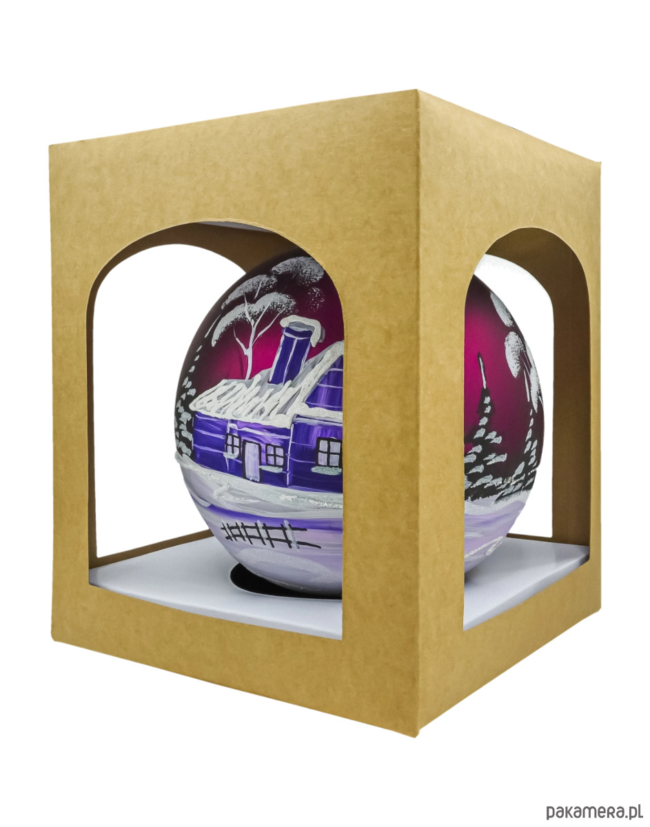 Ta ręcznie malowana bombka świąteczna wprowadza klimat zimowej bajki do każdego wnętrza. Zestawiaj ją z białymi i srebrnymi ozdobami, by podkreślić chłodny blask pejzażu, lub z ciepłymi światełkami i naturalnymi gałązkami świerku, tworząc przytulną, tradycyjną aranżację. Dzięki eleganckiemu pudełku to gotowy prezent na Boże Narodzenie dla miłośników szklanych bombek i dekoracji premium.