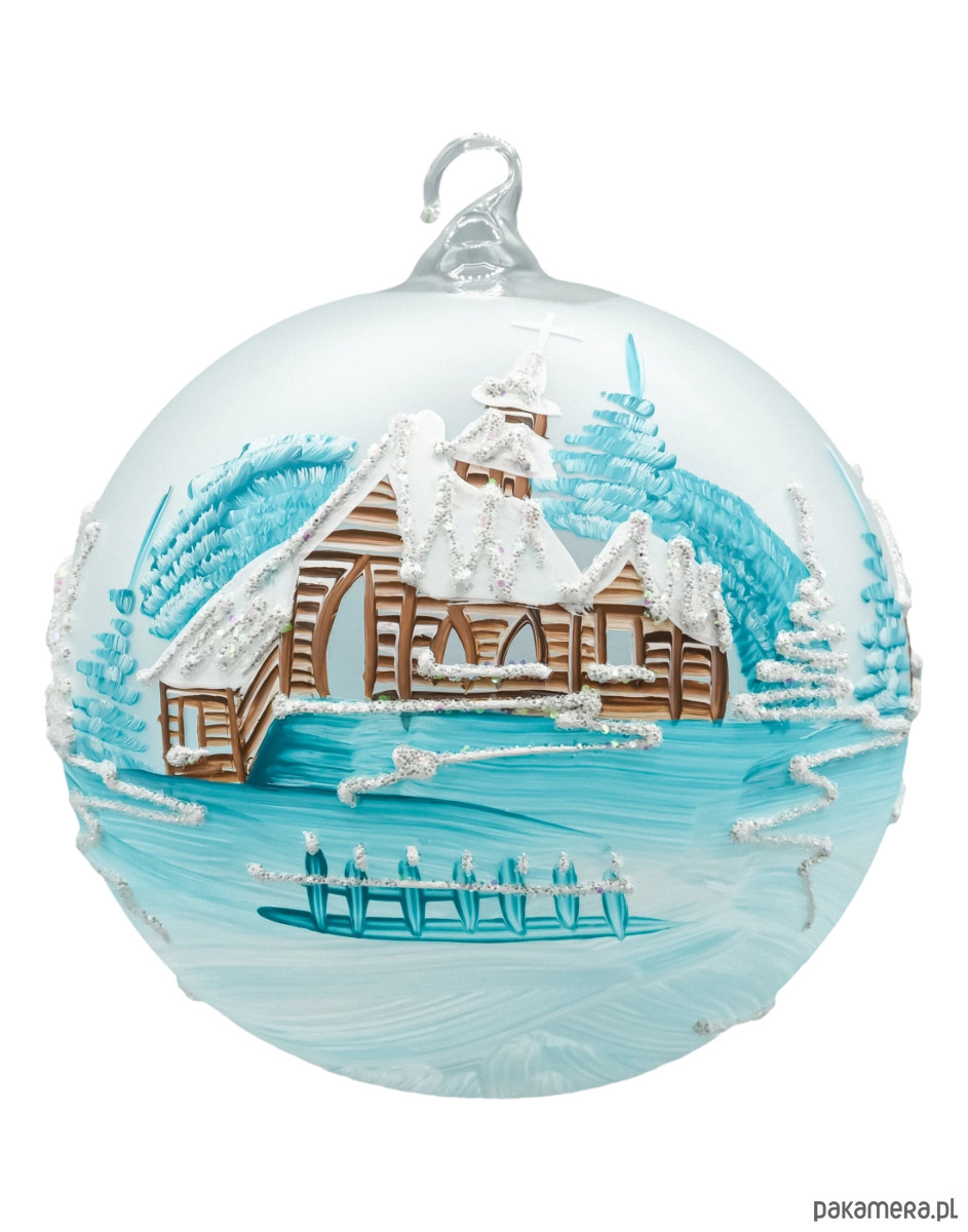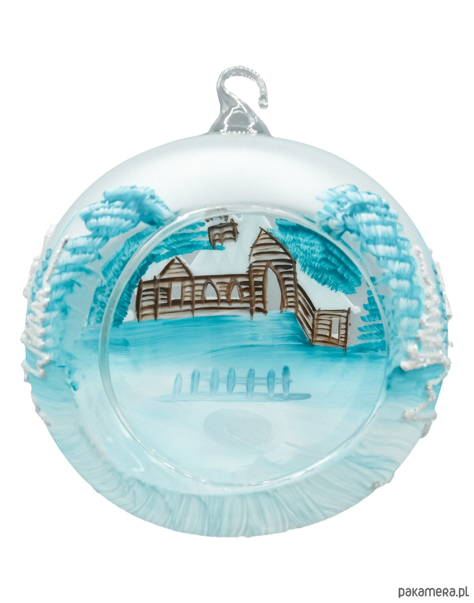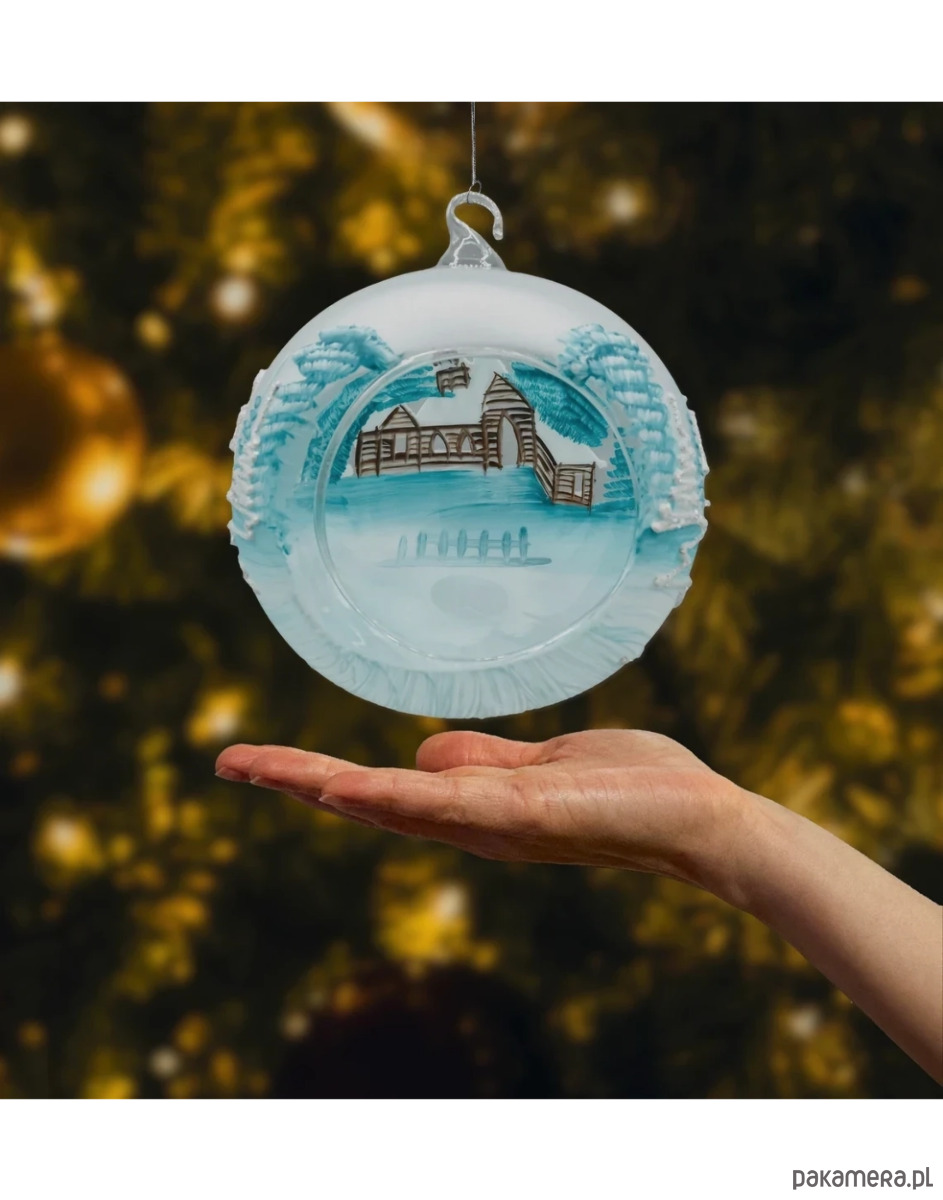 • Dekor: ręcznie malowana zimowa wioska, akcenty srebrnego brokatu
