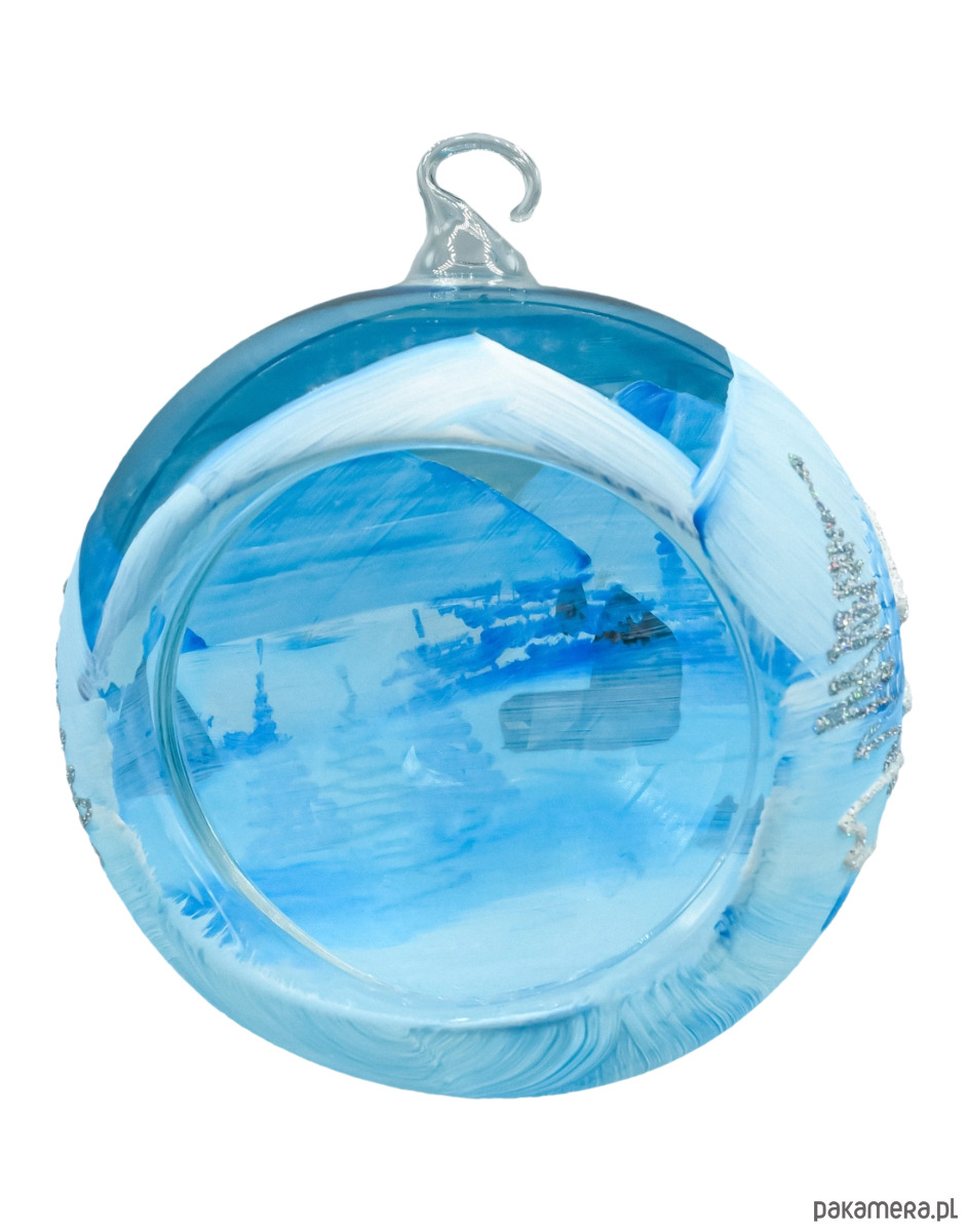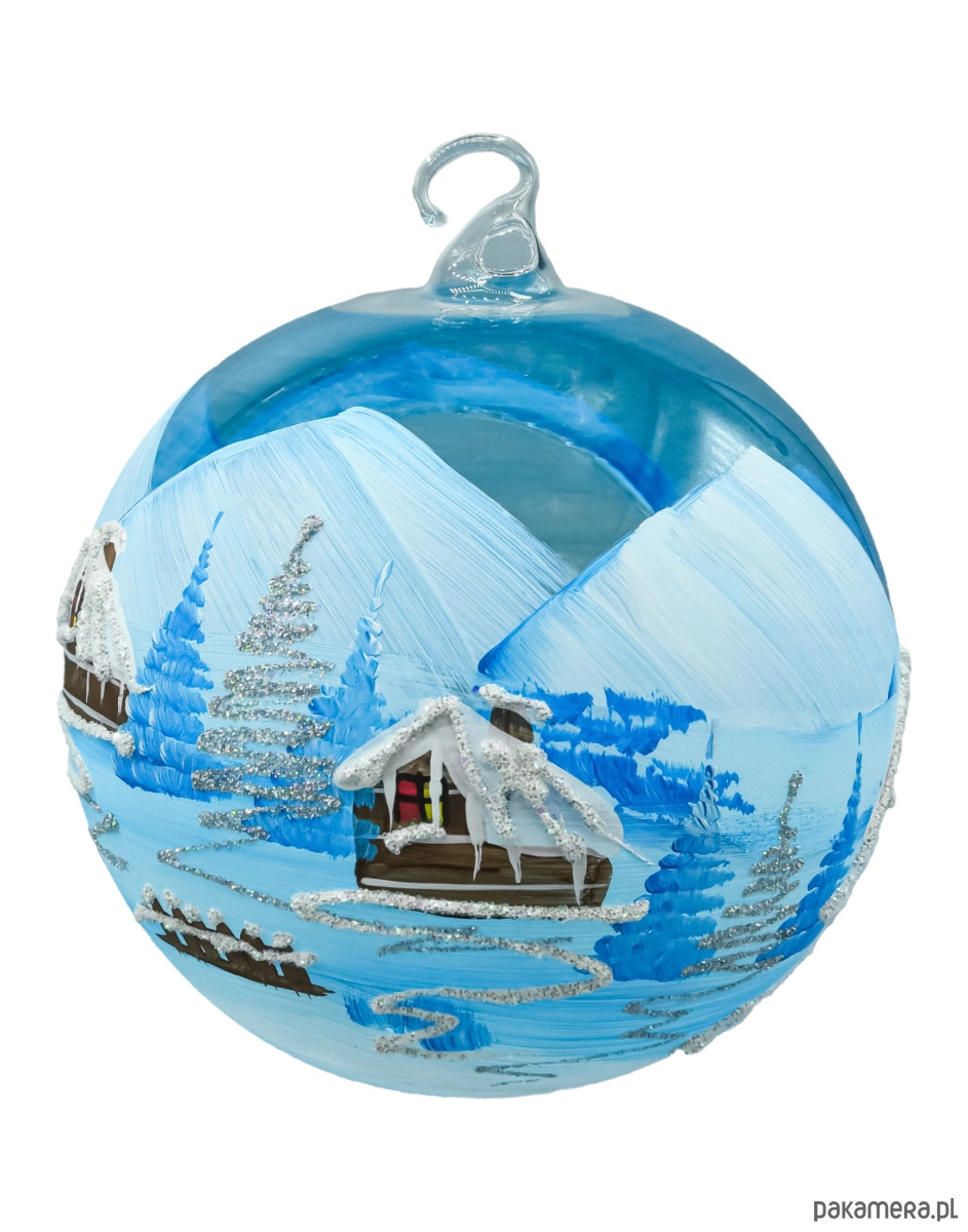 • ręcznie malowana scena zimowa + zdobienie brokatem; każdy egzemplarz jest unikatowy