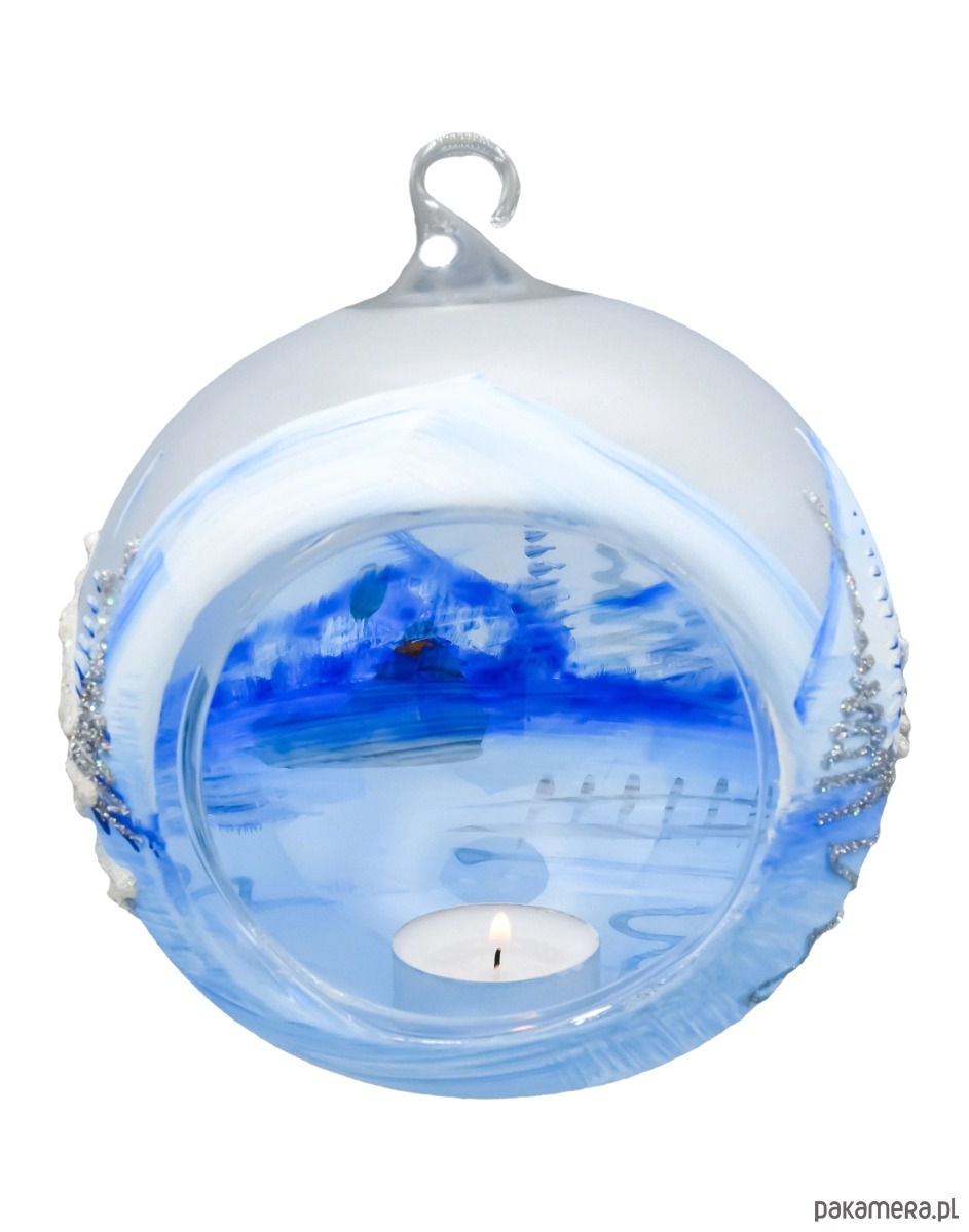 Unikalny otwór z przodu bombki tworzy wnętrze przypominające teatrzyk – idealne do umieszczenia świeczki typu tealight. Wewnątrz rozciąga się iluzja trójwymiarowego pejzażu, który po zapaleniu światła zyskuje ciepło i magiczną atmosferę.