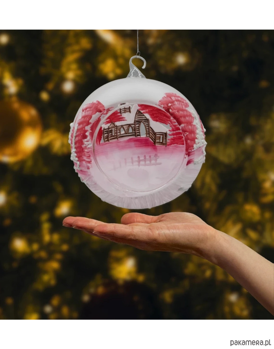 • Dekor: ręcznie malowana zimowa wioska / kościółek, akcenty srebrnego brokatu