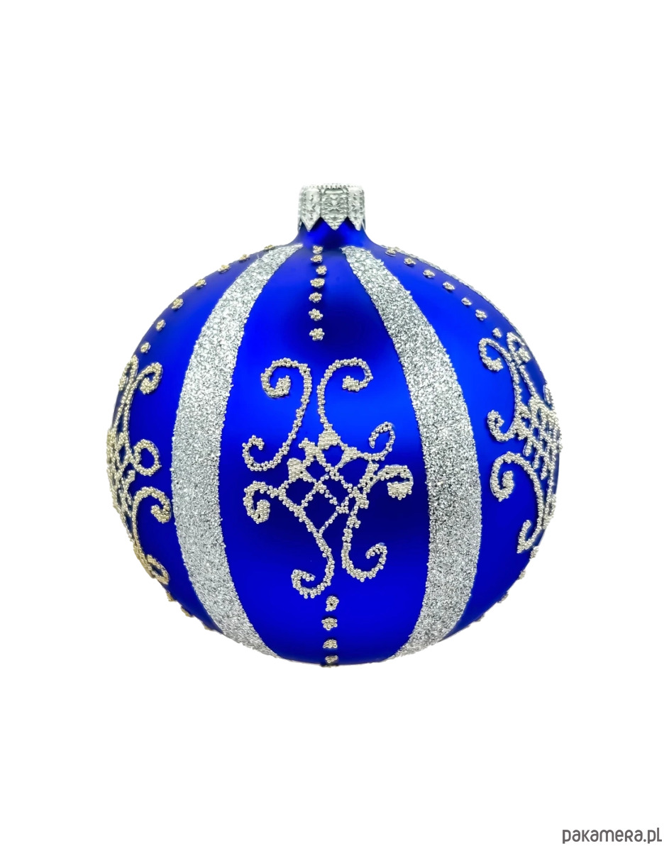Bombka niebieska z eleganckimi srebrnymi zdobieniami
