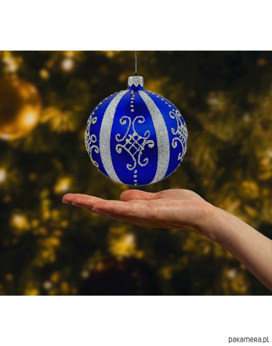 Szklana bombka choinkowa w kolorze niebieskim z eleganckimi srebrnymi zdobieniami to doskonały dodatek do każdej choinki, który wprowadzi do wnętrza odrobinę luksusu i świątecznego blasku. Starannie wykonane detale, intensywny kolor i wysoka jakość sprawiają, że jest to idealny wybór na prezent lub jako wyjątkowa dekoracja, która uczyni święta jeszcze bardziej magicznymi.