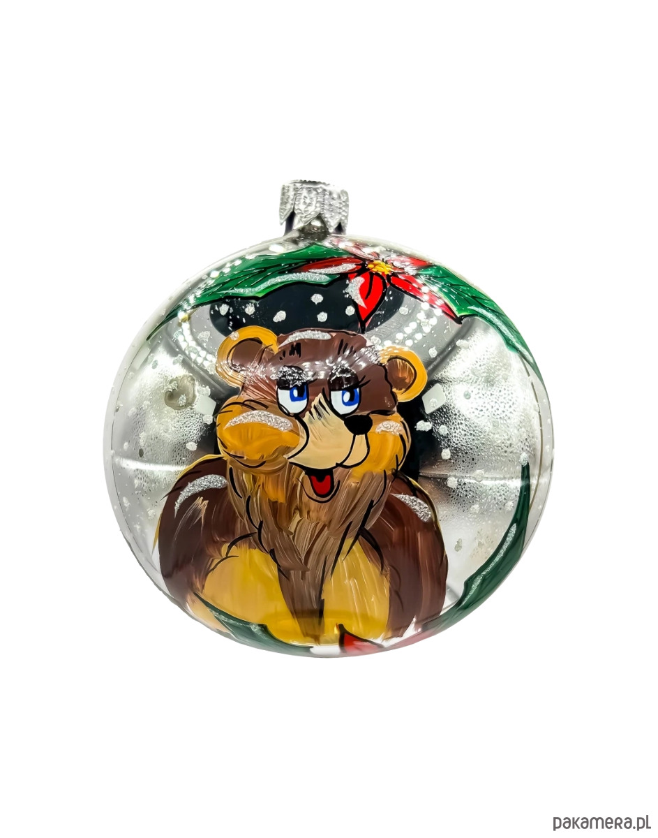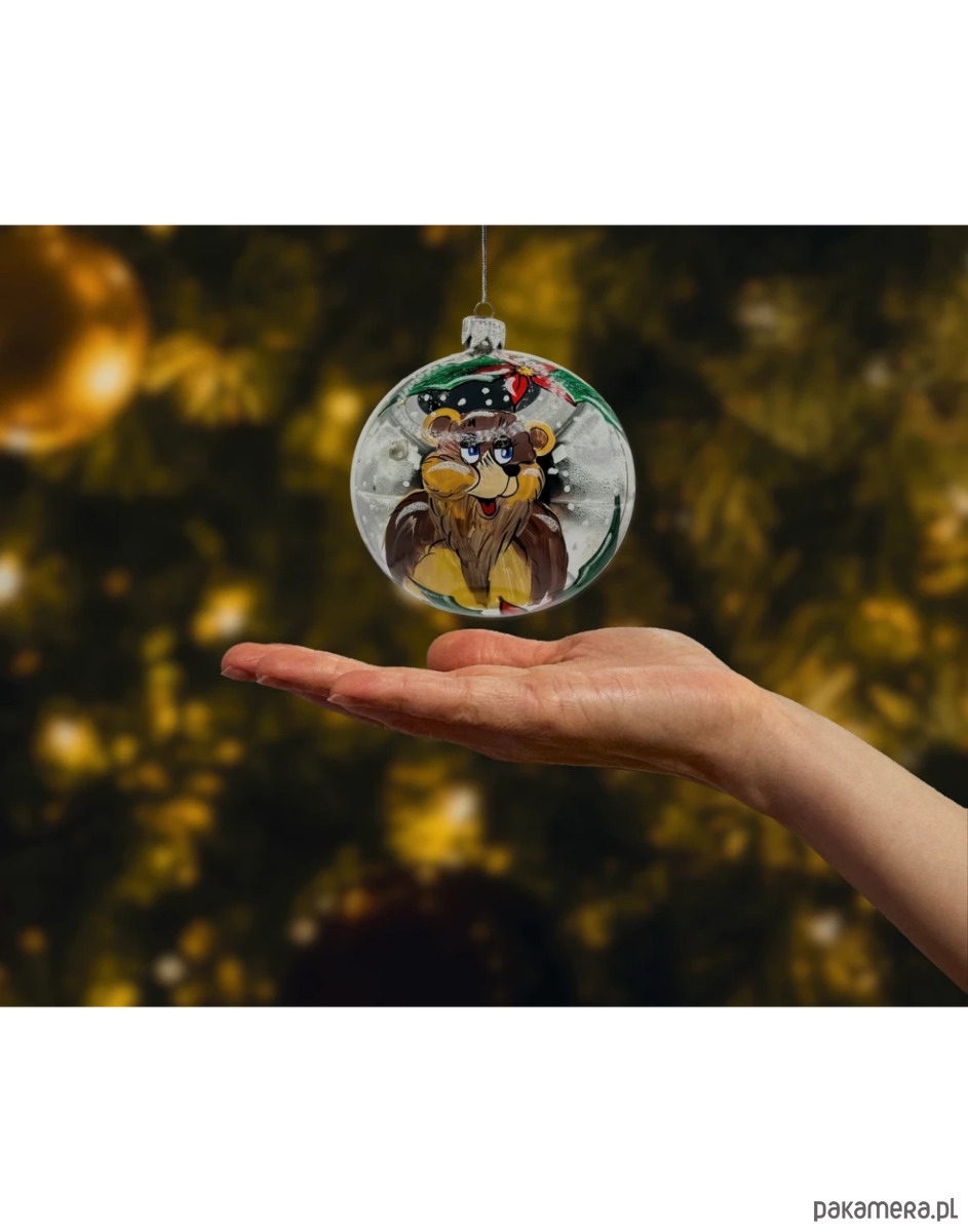 Szklana bombka choinkowa z ręcznie malowanym motywem misia to wyjątkowa ozdoba, która wprowadzi do Twojego domu świąteczny urok i ciepłą atmosferę. Piękne, ręczne malowanie i świąteczne akcenty czynią ją idealnym dodatkiem do choinki lub uroczym prezentem dla najbliższych, który z pewnością wywoła uśmiech i wzbudzi zachwyt.