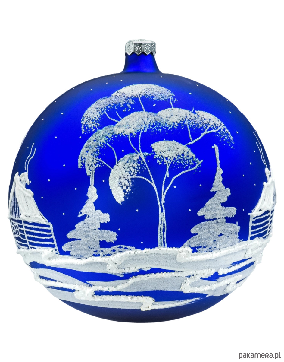 Bombka choinkowa 20 cm – granatowa, ręcznie malowana zimowa wioska