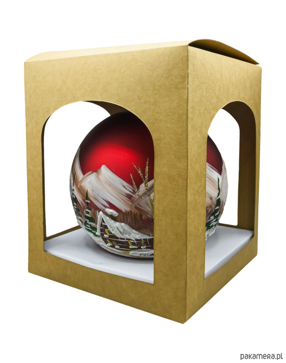 Bombka pakowana jest w pudełko prezentowe z okienkiem, które ułatwia przechowywanie i sprawia, że produkt jest gotowy do wręczenia.