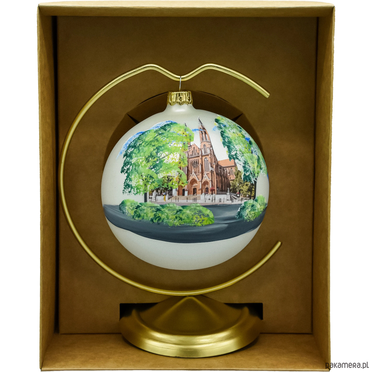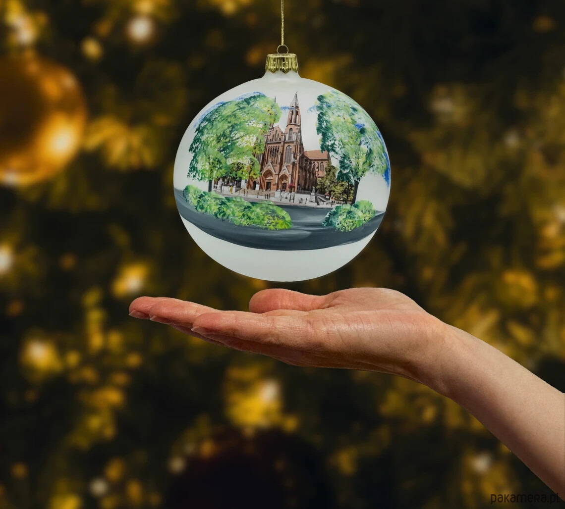 Zanurz się w świąteczny klimat Podlasia dzięki kolekcjonerskiej bombce ze scenką Białegostoku. Ręcznie dmuchana kula o średnicy 10 cm została w całości ozdobiona ręcznie – na froncie widnieje malarska panorama z katedrą i zielenią miasta, wykończona delikatnym brokatem, który subtelnie połyskuje w świetle lampek. Na rewersie znajduje się napis „Białystok”, dzięki czemu ozdoba jest gotową pamiątką i prezentem. W komplecie otrzymujesz stabilny, metalowy stojak w kolorze złota, idealnie dopasowany do średnicy bombki – dzięki niemu eksponujesz pamiątkę nie tylko na choince, ale także na komodzie przez cały rok.