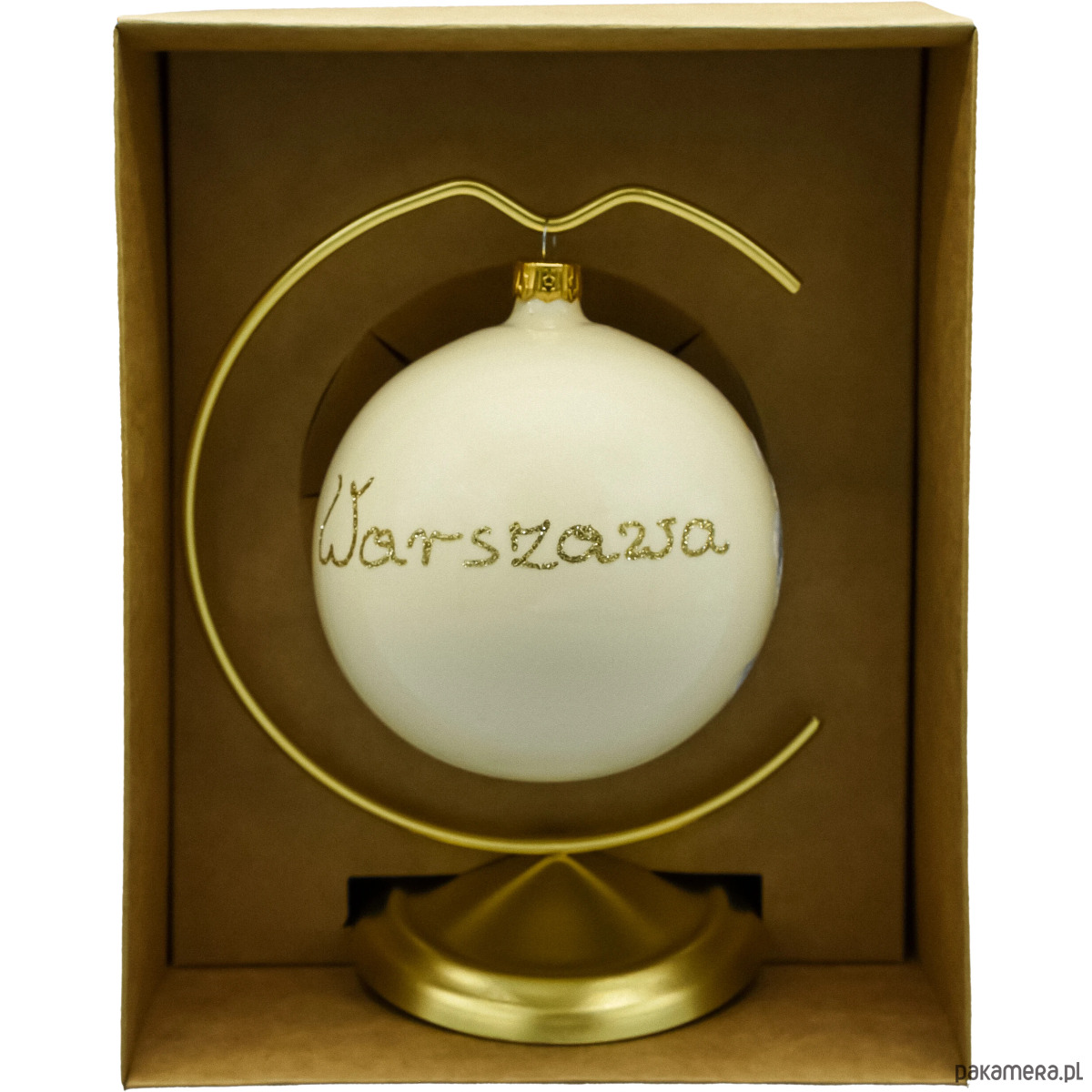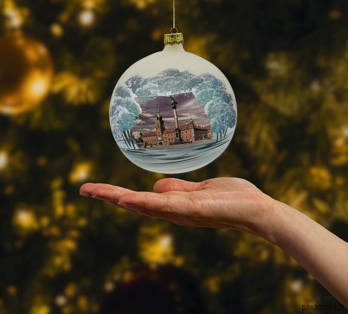 Każdy egzemplarz jest tworzony w krótkich seriach przez polskich dekoratorów – stąd drobne różnice pociągnięć pędzla świadczą o rękodzielniczym charakterze wyrobu. Jeżeli szukasz efektownej pamiątki z Warszawy, prezentu dla warszawiaka lub firmowego podarunku w świątecznym klimacie, ta bombka ze stojakiem będzie strzałem w dziesiątkę.