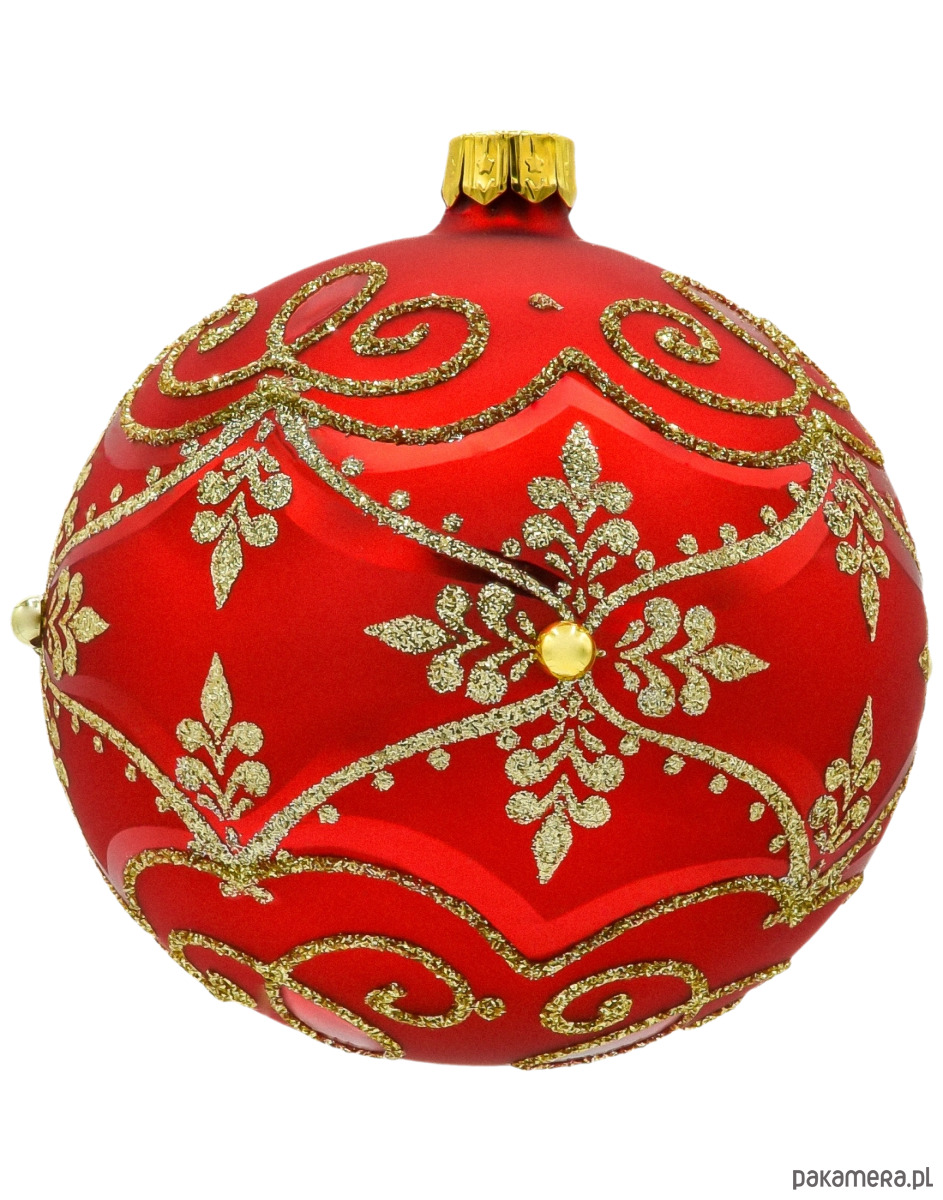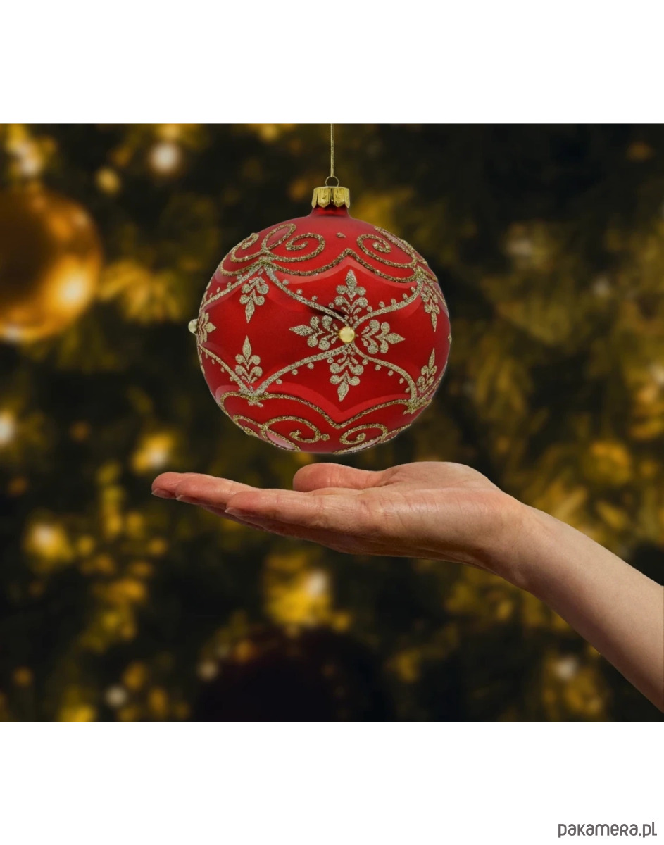 Ręczne zdobienie sprawia, że każda bombka jest unikatowa. To idealny wybór dla osób, które cenią klasykę, świąteczny przepych i najwyższą jakość wykonania. Bombka doskonale prezentuje się zarówno na zielonej choince, jak i wśród złotych lub czerwonych dekoracji w stylu glamour.