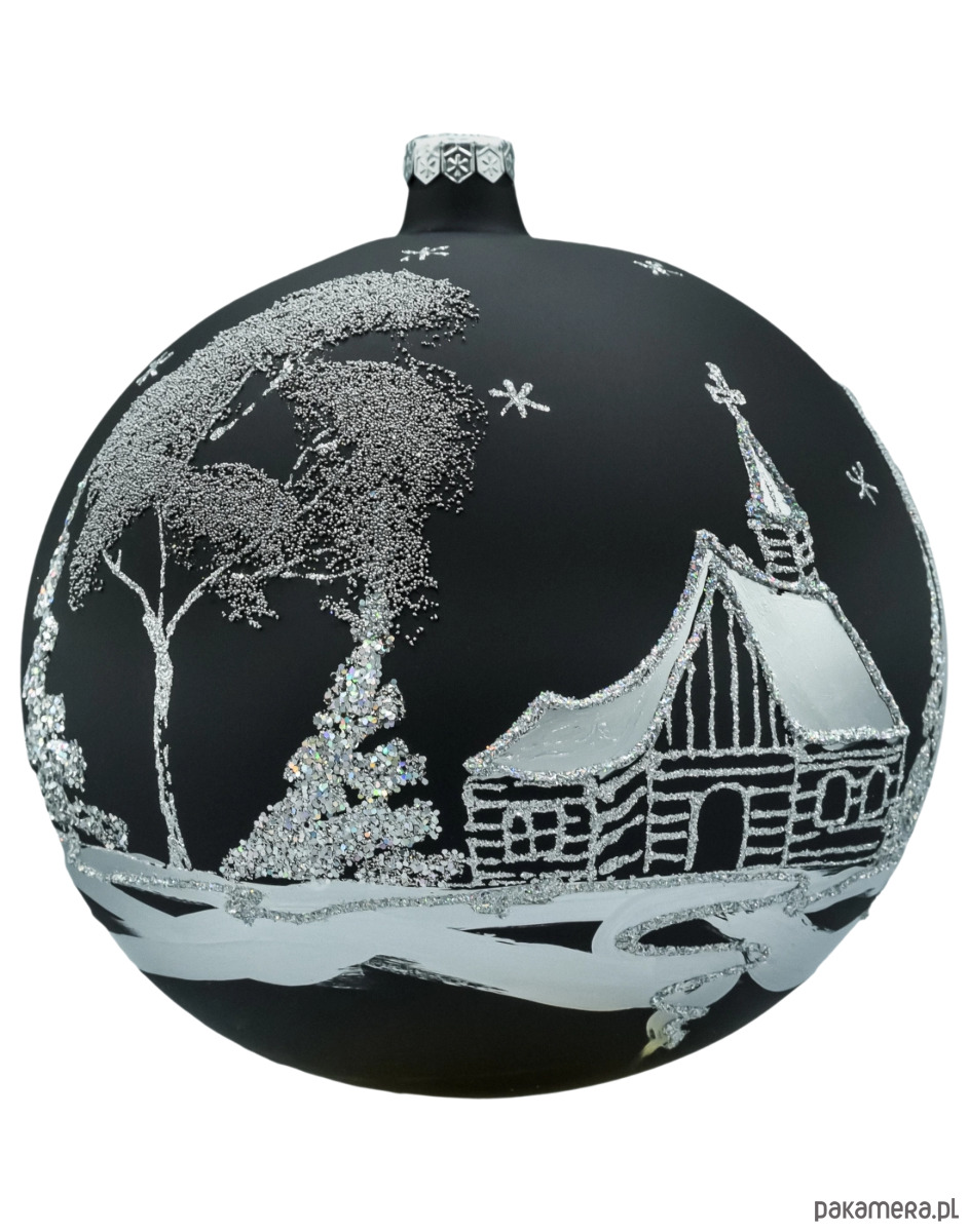 Bombka okrągła ze srebrnym pejzażem: czarna