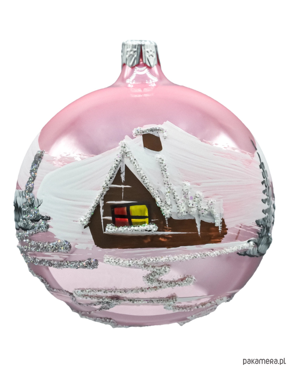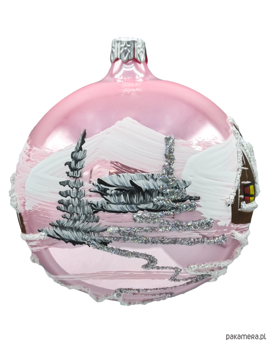 Bombka szklana kula różowa z zimowym pejzażem – ręcznie malowana