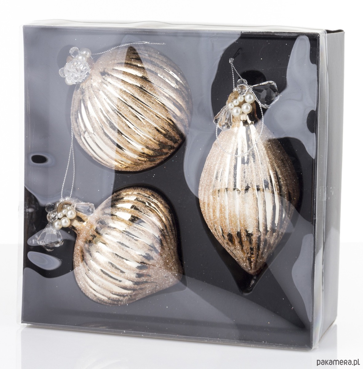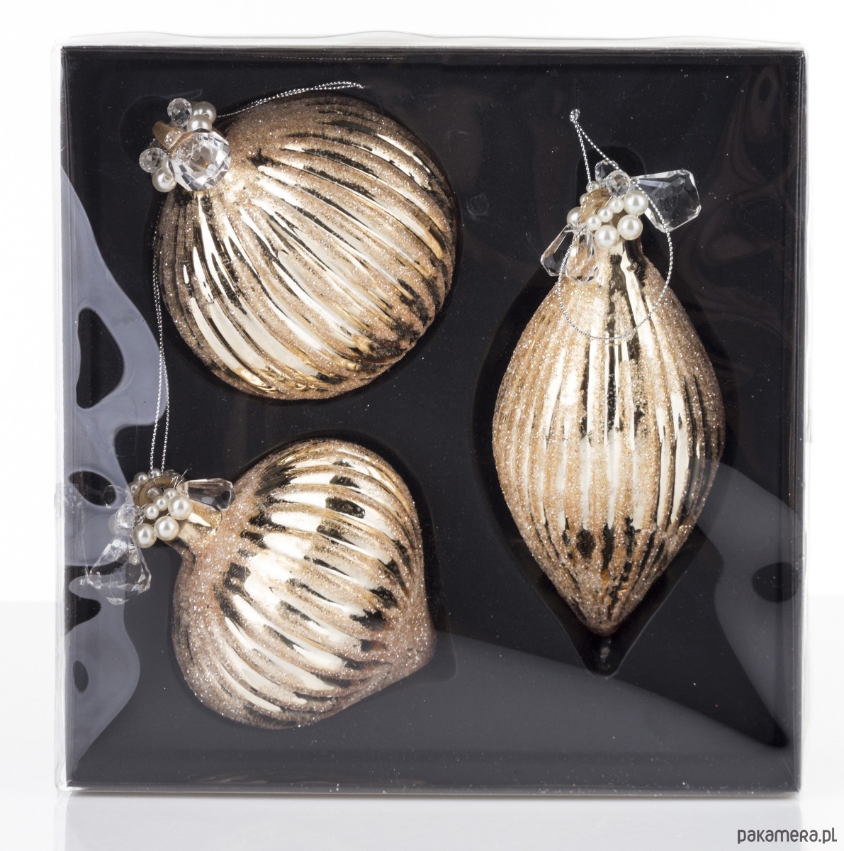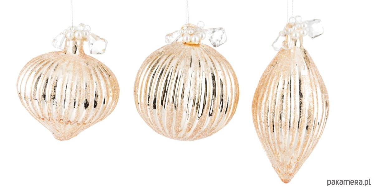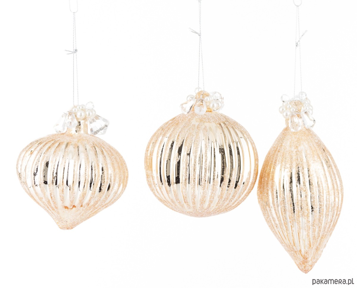 Bombka szklana 3 szt. złota z perełkami