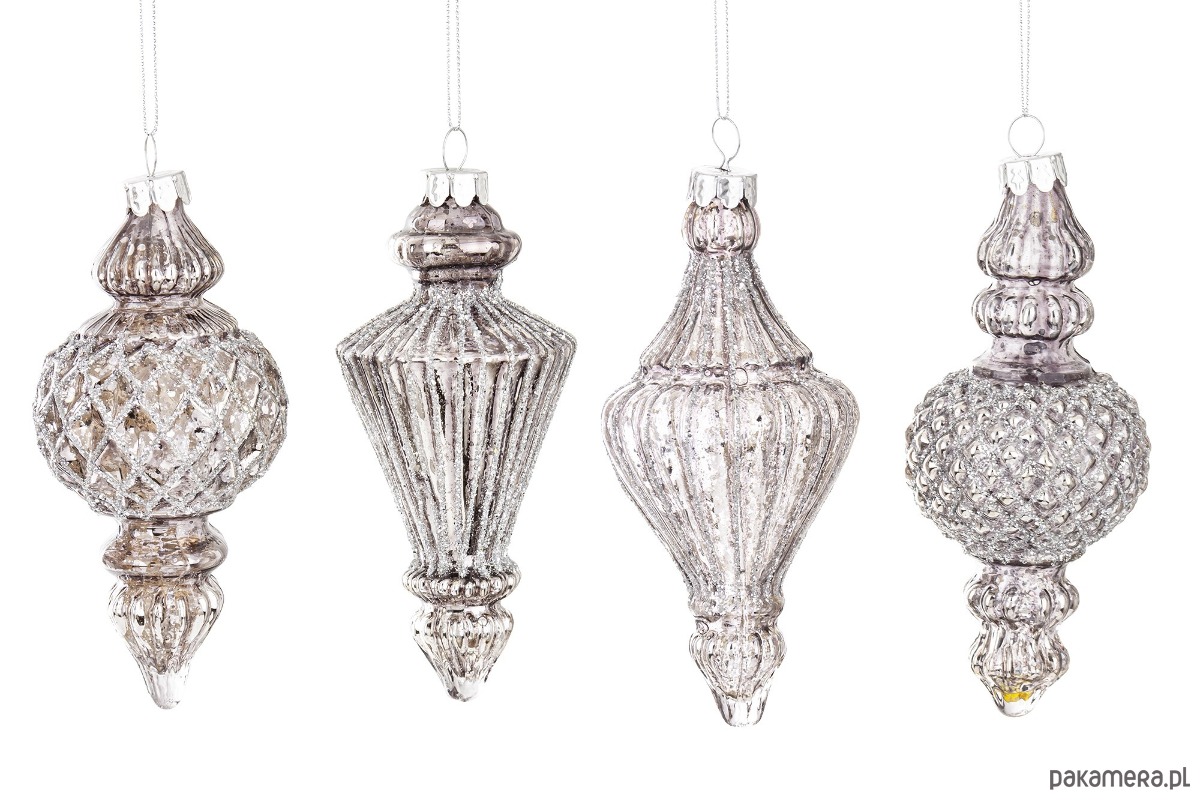 Bombka szklana 4szt. 14x6,5 15x6 cm JOLANDA szarosrebrna
