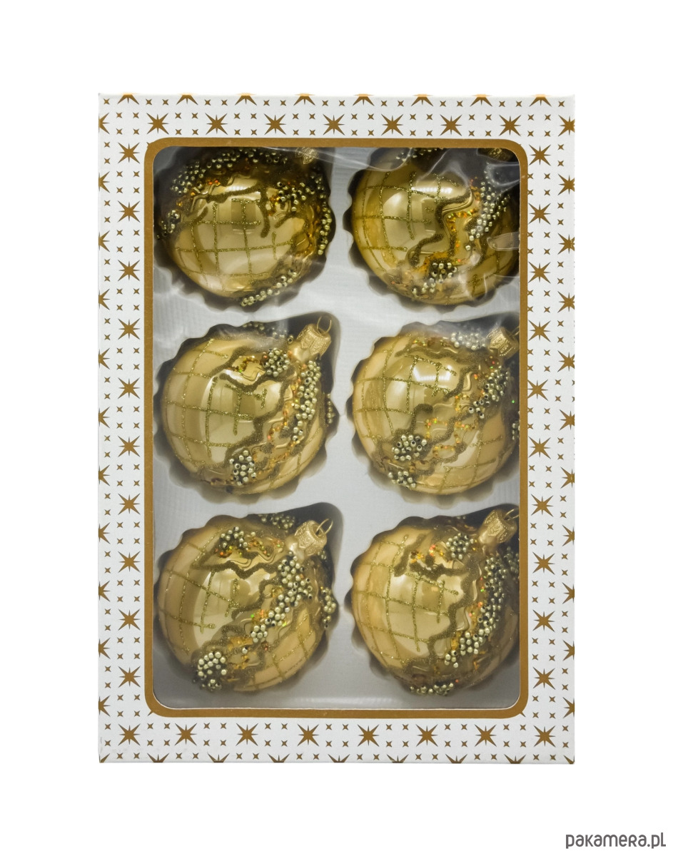 Bombka złota Vintage z bogatymi zdobieniami: 6 sztuk