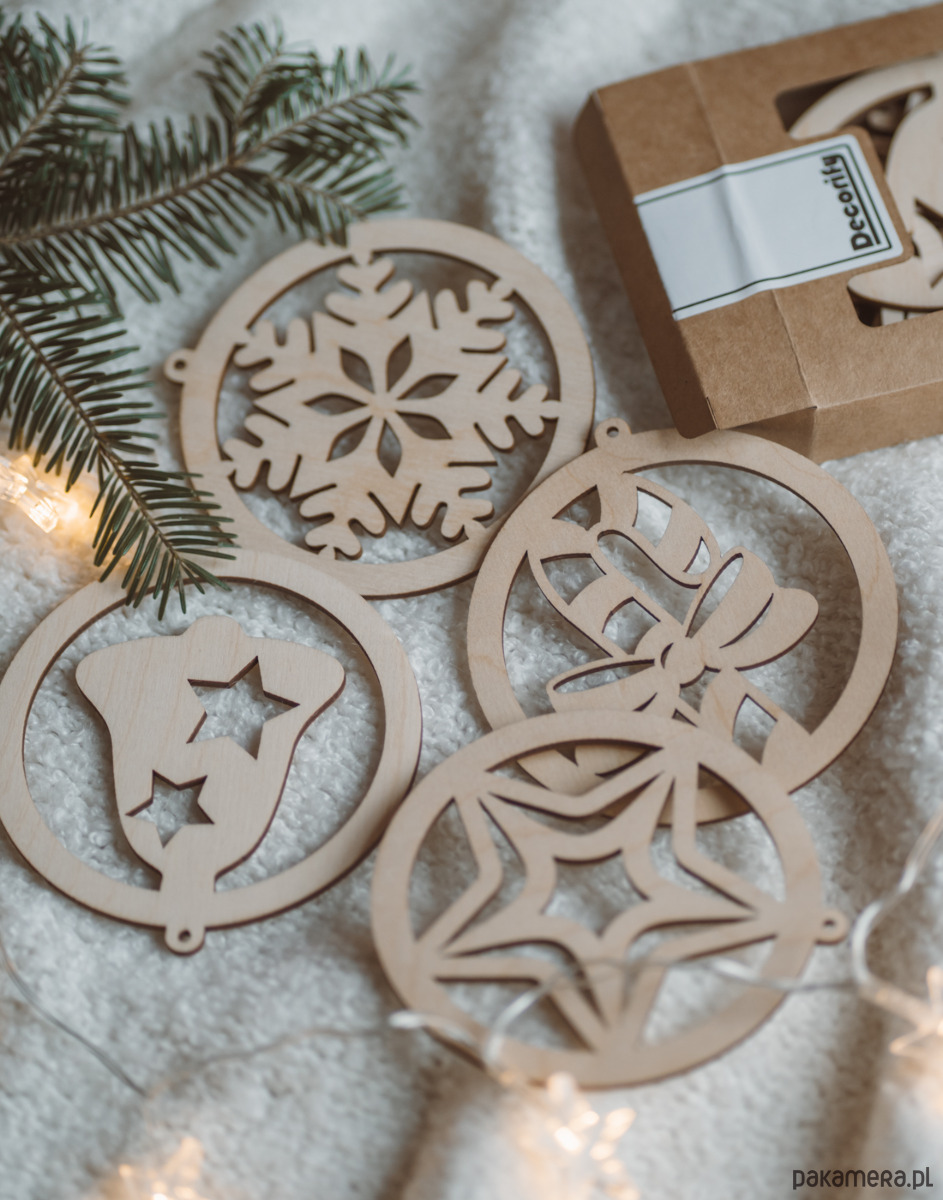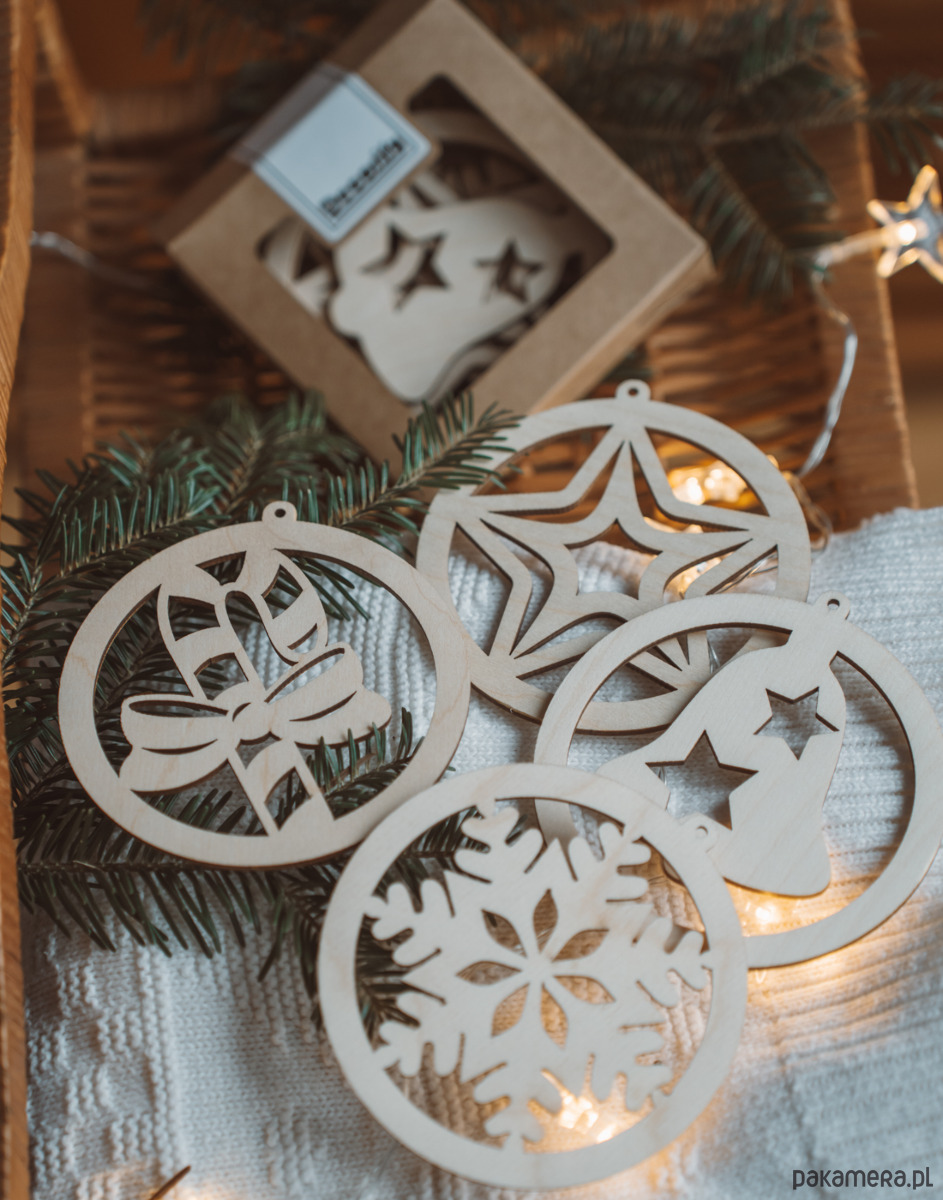 Przywitaj święta w naturalnym stylu z zestawem drewnianych bombek od Decorify. Każda bombka jest starannie wykonana z wysokiej jakości sklejki z precyzyjnie wyciętym świątecznym wzorem. Bombki drewniane z pewnością będą świetnym dodatkiem na choince, na oknie czy świątecznym kominku i doskonale wpiszą się w estetykę rustykalnych, boho i skandynawskich dekoracji, dodając ciepła i wyjątkowego uroku Twojej choince. Nasz zestaw drewnianych bombek zapakowany jest w eleganckie kartonowe pudełko, które nie tylko chroni je podczas przechowywania, ale również sprawia, że stanowią doskonały prezent dla bliskich.