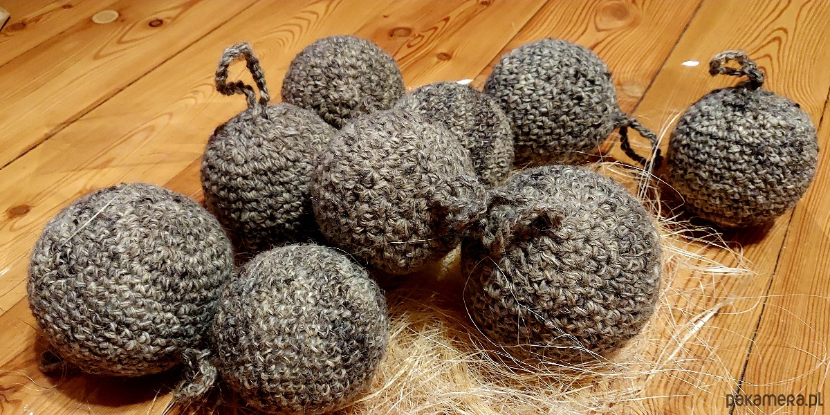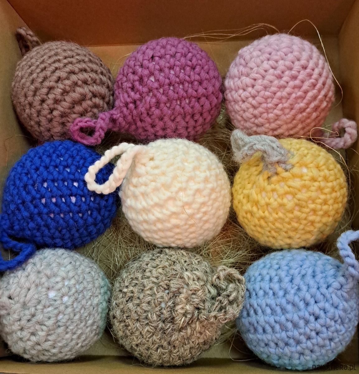 Kule styropianowe oplecione ręcznie wełną z zawieszką