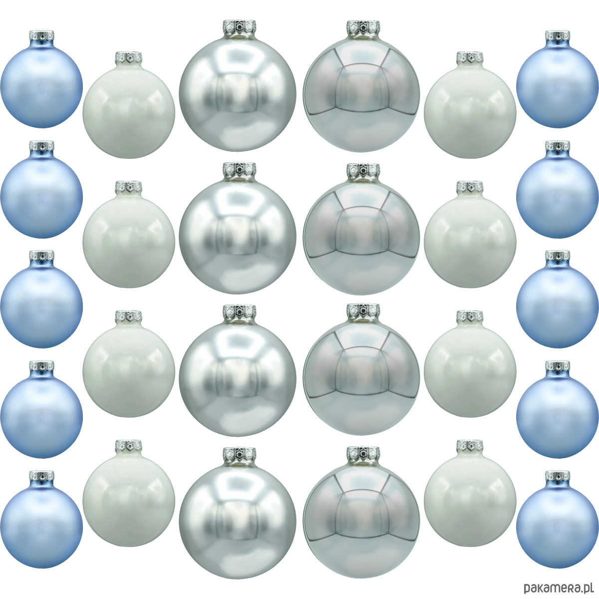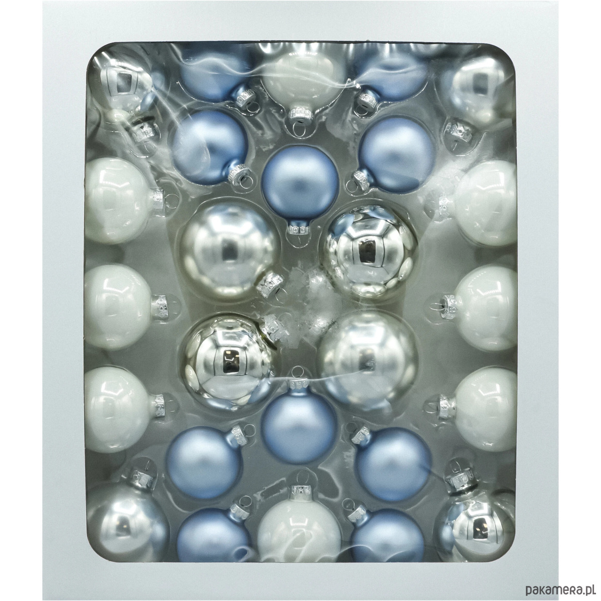 Elegancki, wieloelementowy zestaw bombek choinkowych w odcieniach srebra, perłowej bieli i lodowego błękitu to klasyka, która rozświetla choinkę i nadaje wnętrzu zimowego, szlachetnego charakteru. W komplecie znajdziesz małe, lekkie kulki w trzech wykończeniach – połysk (chrome), mat oraz perła – dzięki czemu dekoracja zyskuje głębię i pięknie odbija światło lampek. Chłodna paleta kolorystyczna harmonizuje z białymi światełkami, naturalną zielenią drzewka oraz nowoczesnymi, skandynawskimi aranżacjami.
