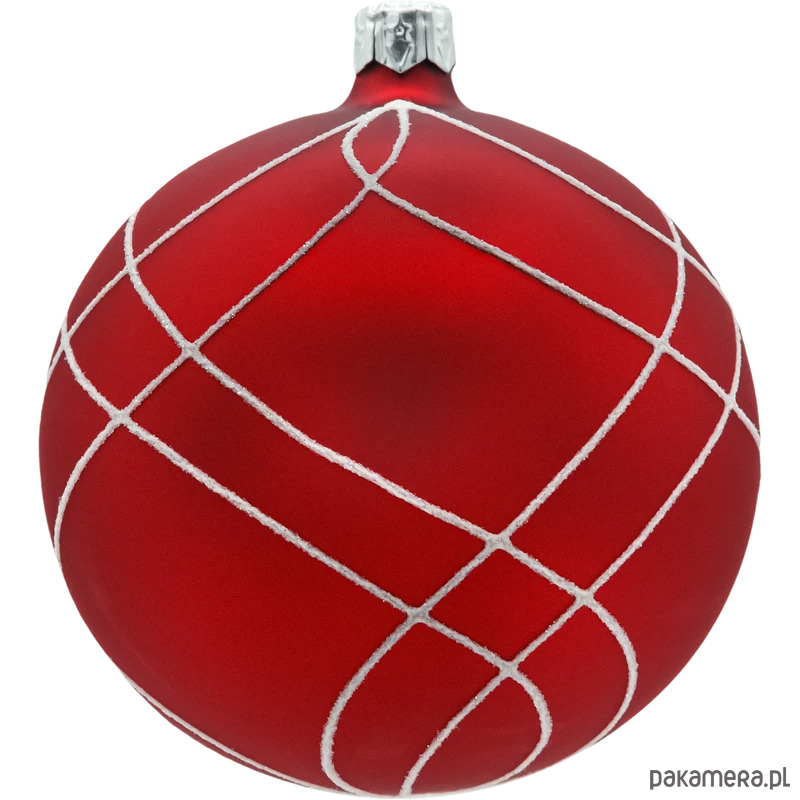 Klasyka świąt w najlepszym, rzemieślniczym wydaniu. Zestaw dwóch bombek choinkowych o średnicy 10 cm został ręcznie wydmuchany ze szkła i malowany pędzlem w naszej polskiej manufakturze. Pierwsza kula to połyskująca czerwień z szerokimi spiralnymi pasami w zielonym brokacie i śnieżnobiałym, „cukrowym” wykończeniu – przywodzi na myśl laskę cukrową (candy cane). Druga to elegancka matowa czerwień z delikatną białą kratką ciągniętą pociągnięciem pędzla – z daleka rysuje się na choince jak świetlista siatka.