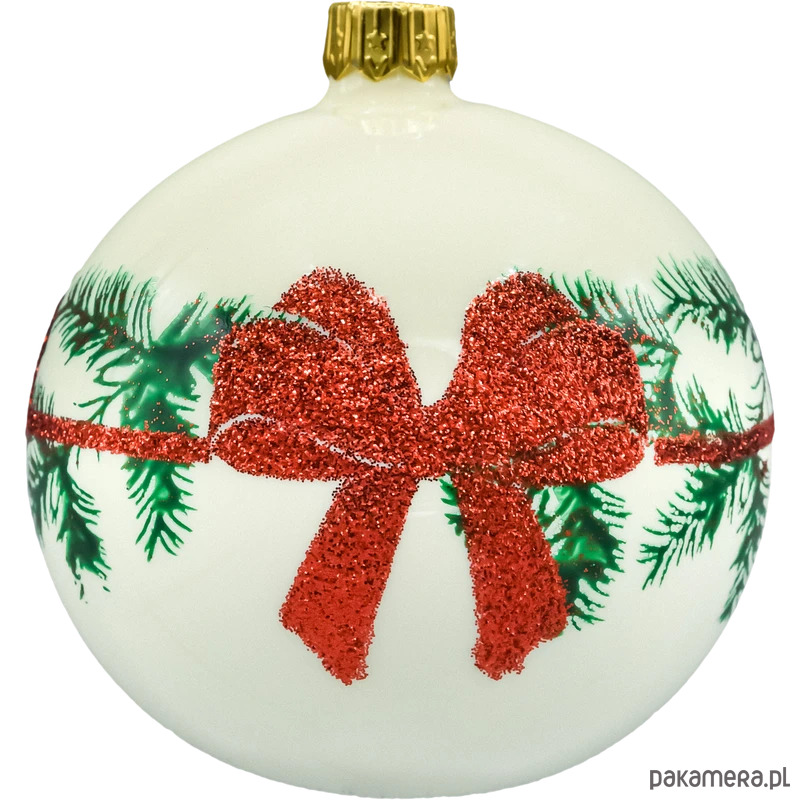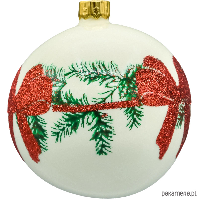 • Wykończenie: kremowa baza + ręczna dekoracja (zielone gałązki świerku, czerwone brokatowe kokardy); subtelny, świąteczny połysk.