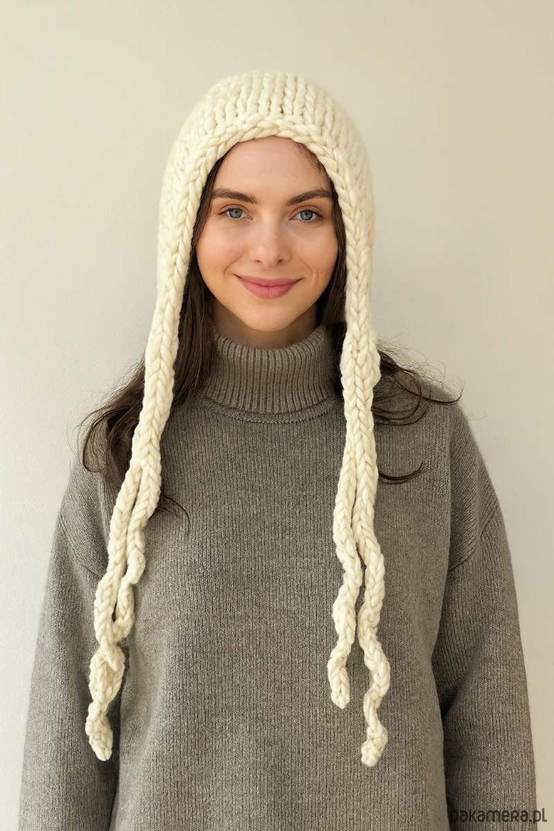 Jego unikalny design pozwala nosić go na dwa sposoby – możesz zawiązać go pod szyją, chroniąc się przed wiatrem i mrozem, lub puścić luźno, co doda lekkości Twojemu zimowemu lookowi. Długie sznurki to nie tylko praktyczny element, ale i efektowny detal, który przyciąga spojrzenia.