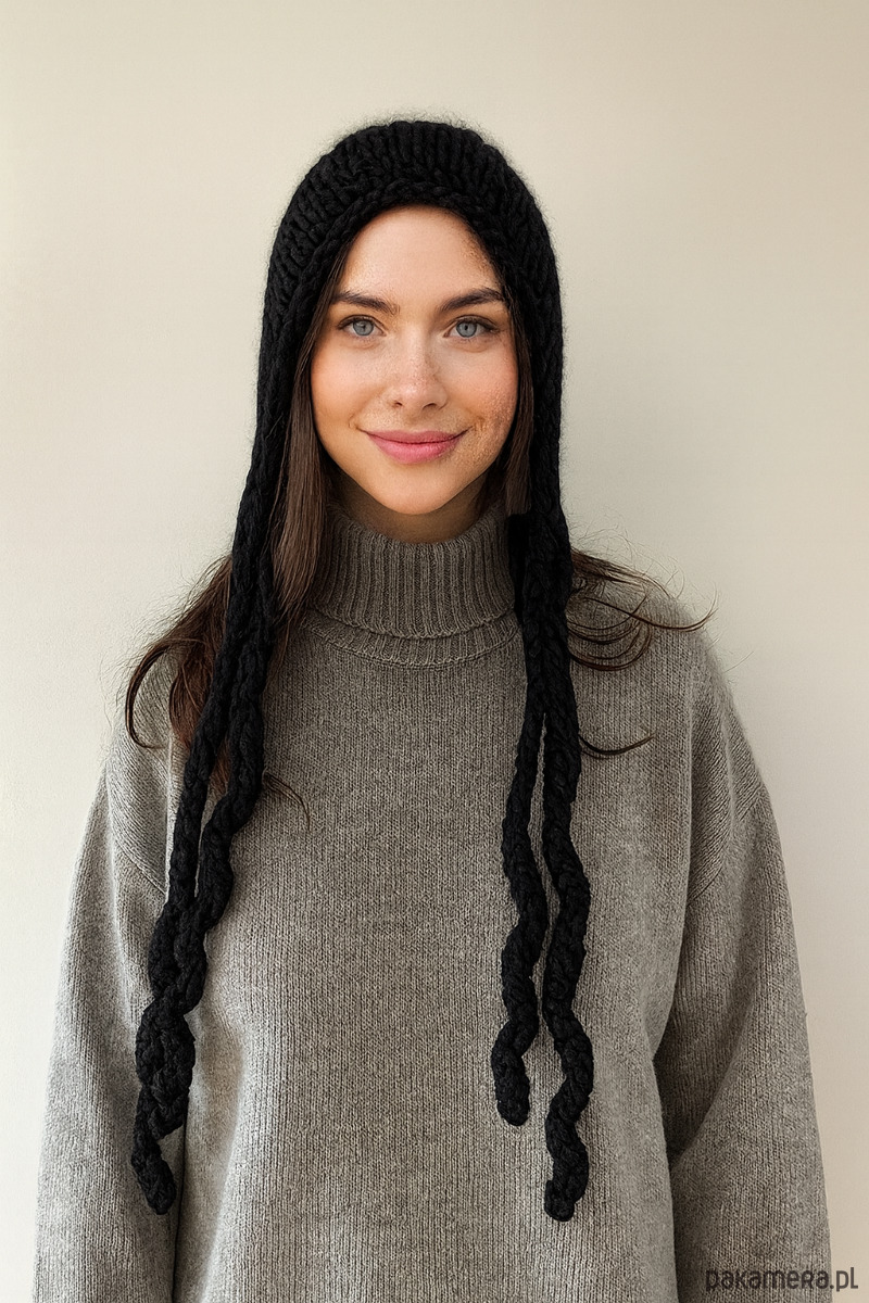 Jego unikalny design pozwala nosić go na dwa sposoby – możesz zawiązać go pod szyją, chroniąc się przed wiatrem i mrozem, lub puścić luźno, co doda lekkości Twojemu zimowemu lookowi. Długie sznurki to nie tylko praktyczny element, ale i efektowny detal, który przyciąga spojrzenia.